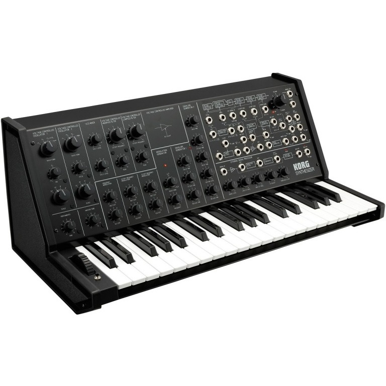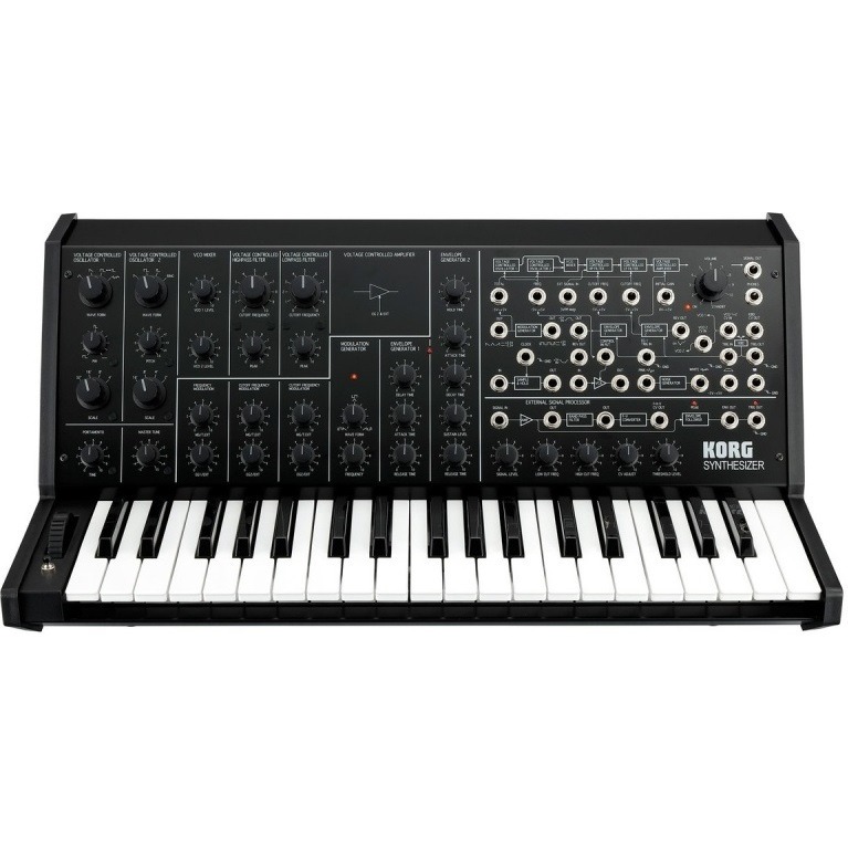 KORG MS-20 FS BLACK - одноголосный аналоговый синтезатор; клавиатура: 37 полноразмерных клавишей (3 октавы); основные элементы управления: программируемое колесо с центральной фиксацией, переключатель без фиксации; входы/выходы: SIGNAL IN моно джек, SIGNAL OUT моно джек, выход 2Vp-p (3.5 кОм), PHONES стерео джек (33 Ом, 48 мВт), DC12 В, MIDI IN, USB (type B); питание: от внешнего адаптера 12 В DC; размеры (Ш x Г x В): 573 x 316 x 248 мм; вес: 3 кг; цвет: чёрный; остальные характеристики совпадают с MS-20 mini.