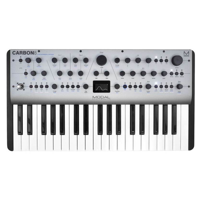 Modal CARBON8 - Оснащенный инновационным движком, в два раза более сложным, чем знаменитые серии ARGON8 и COBALT8, CARBON8 объединяет передовые алгоритмы формирования сигналов и волновые таблицы 8—голосный полифонический синтезатор с новейшей технологией фильтрации, возможностями глубокой модуляции и инструментами динамического исполнения.