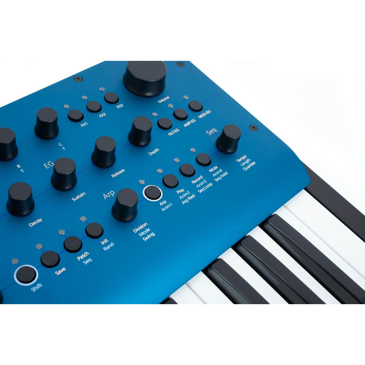 Встроенный 512-нотный пошаговый/реального времени секвенсор с четырьмя мощными дорожками анимации позволяет создавать массивные и сложные мелодические паттерны. Режим полифонического пошагового секвенсора на 64 ноты позволяет легко вводить значения нот и анимации. Множество режимов триггера секвенсора в сочетании с мощным встроенным арпеджиатором (программируемым до 32 шагов) и такими функциями исполнения, как удержание аккордов, инверсии, транспонирование, фиксация сустейна.