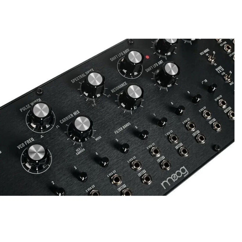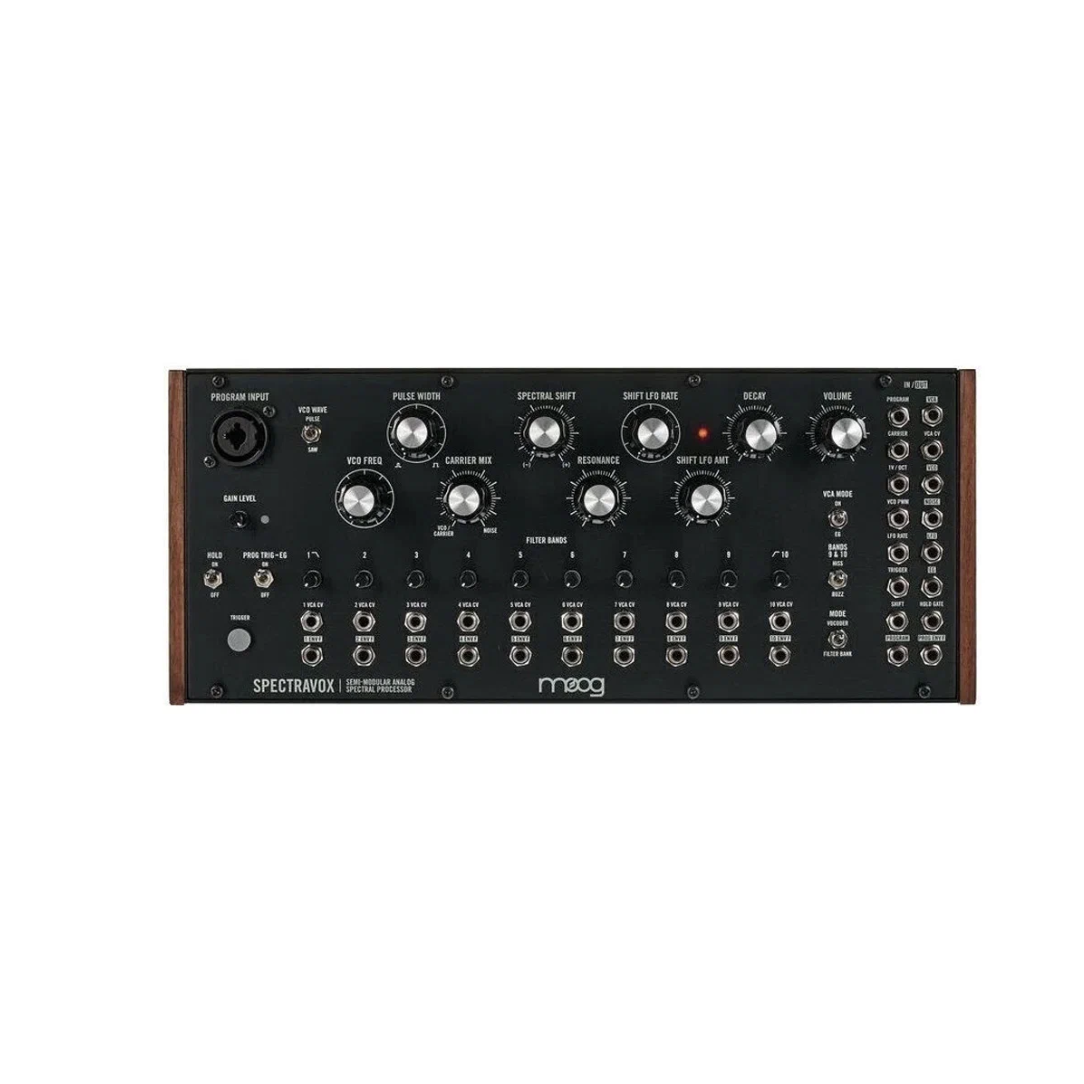 Встроенный генератор с выбором формы волны (пила или прямоугольный с ШИМ) и генератор белого шума позволяют использовать Spectravox как самостоятельный монофонический синтезатор с уникальной фильтрацией. 10 фильтров можно управлять как по отдельности, так и группой, а встроенный LFO позволяет автоматически сканировать спектр, создавая эффект «говорящего» фильтра (formant sweep). Патч-панель с 36 разъемами открывает широкие возможности для модулярной интеграции, позволяя комбинировать Spectravox с другими устройствами Eurorack.