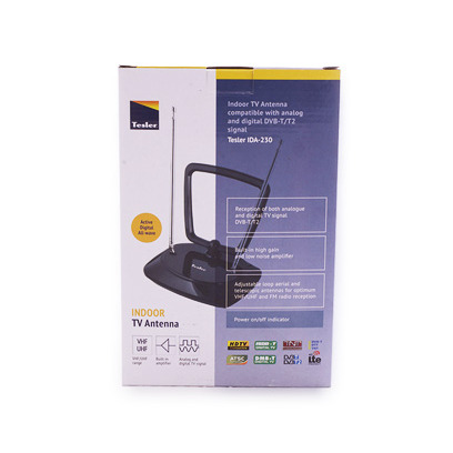 TESLER IDA-150 это телевизионная комнатная антенна используется для приема аналогового и цифрового сигнала DVBT/T2. Антенна имеет регулятор коэффициента усиления, который позволит добиться изображения хорошего качества. Особенно это актуально в условиях городской застройки, где, наряду с прямым ТВ сигналом, обязательно имеется сигнал, отраженный от зданий. Рамка и телескопические дефлекторы, могут менять угол наклона, что позволит оптимально расположить в комнате.