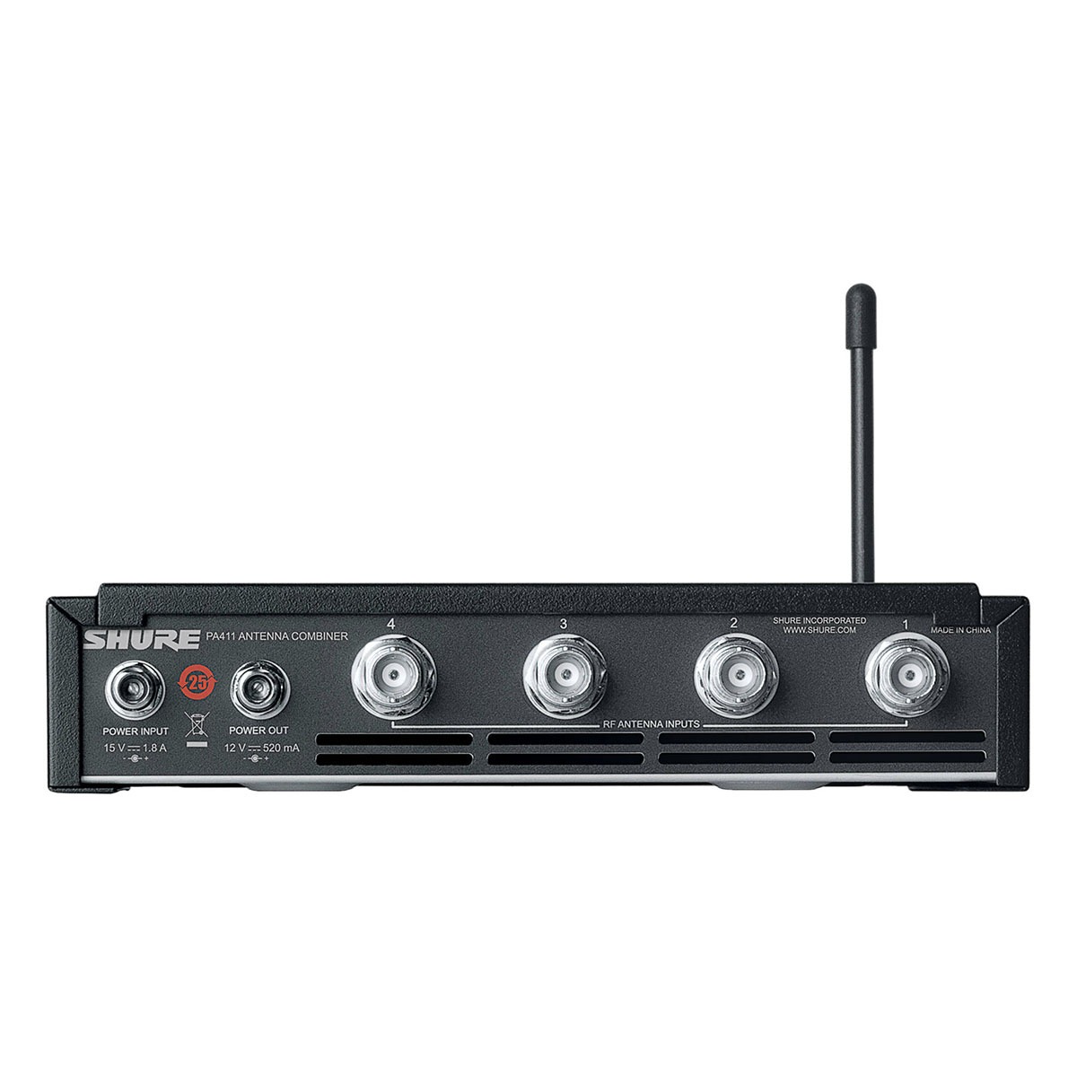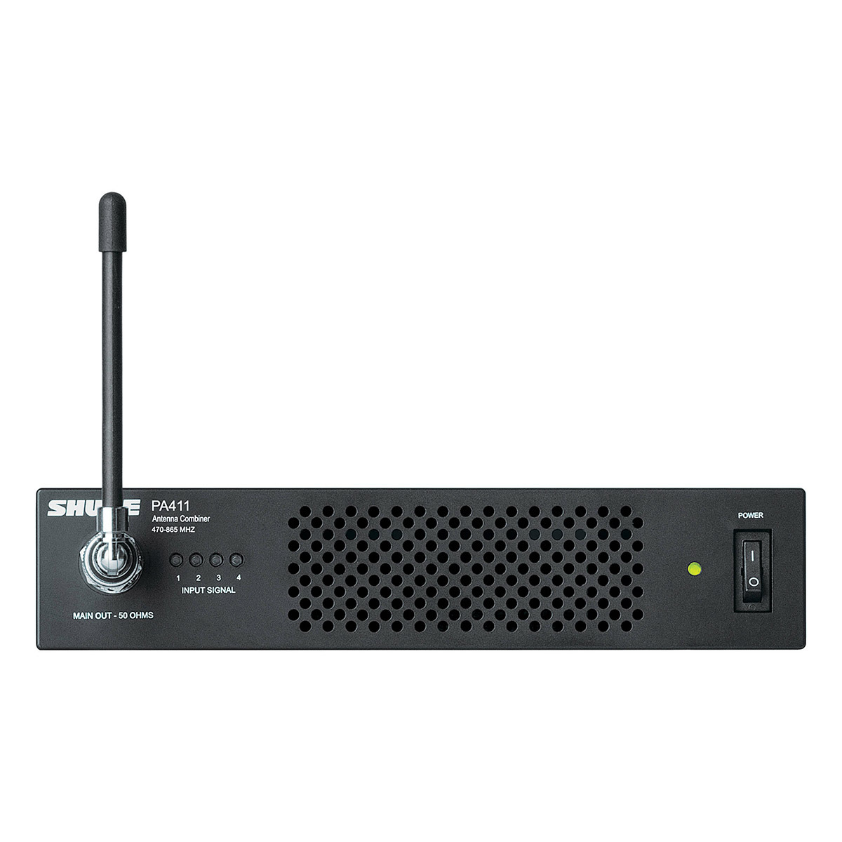 PA411-E от Shure распределяет ток и радиочастотный сигнал между 4 передатчиками серии Shure PSM300. Объединитель представляет собой компактное устройство, которое используется в первую очередь для снижения количества антенн и блоков питания при использовании нескольких радиосистем в самых различных сферах применения (живой звук, театр, репетиционные точки и т.д.).