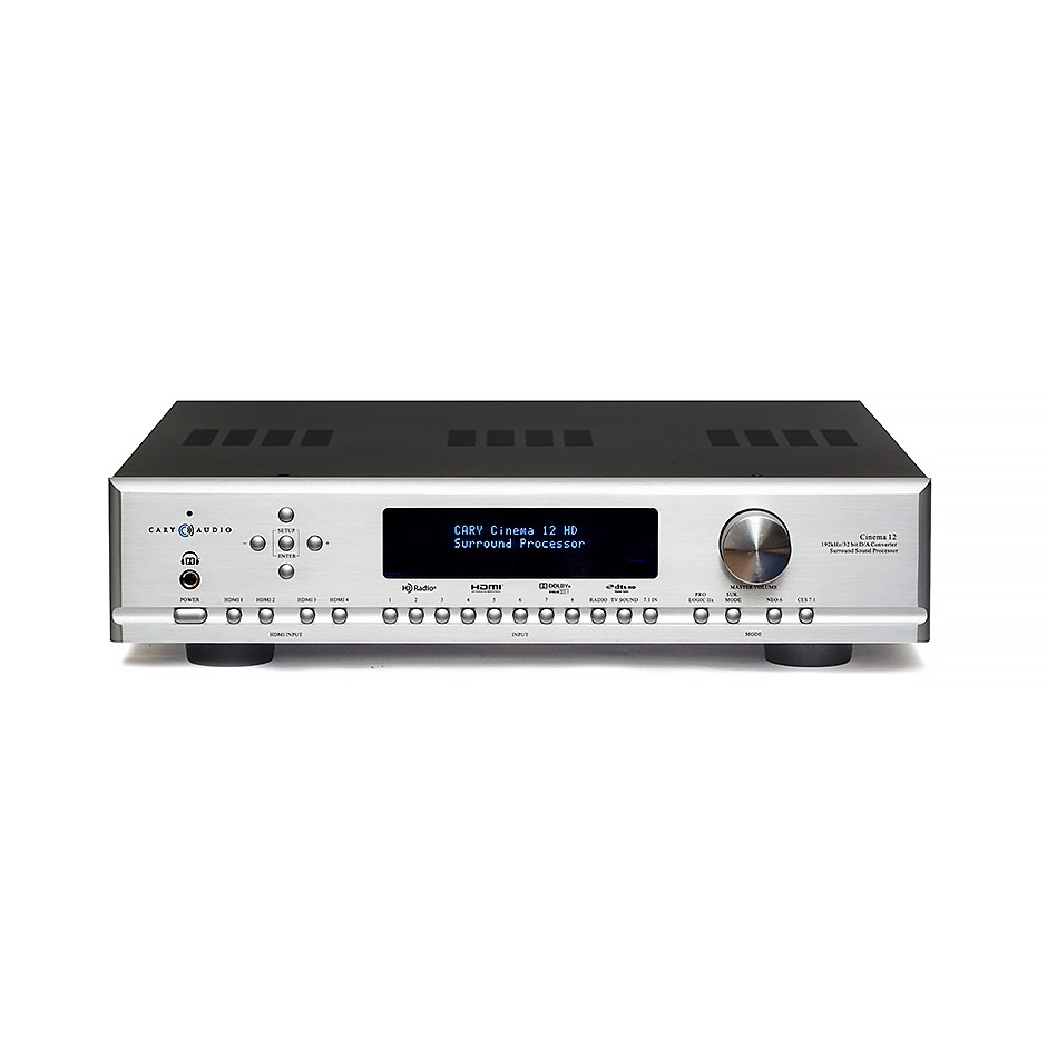 В Cary Audio Design Cinema 12 имеются точная система автокалибровки окружающего звучания с помощью прецизионного измерительного микрофона, регулировка тембра звука в области высоких и низких частот, система управления басами с использованием регулируемого (в пределах 40 – 140 Гц с шагом 10 Гц) входного фильтра. Аппарат можно использовать для создания мультирумных систем, Cinema 12 оснащен балансными и однополярными 7.1-выходами, 7.1-канальным входом для прямого подключения к SACD-проигрывателям, выходом на наушники, разъемом RS232, входами для внешних ИК-датчиков, управляющими триггерными выходами. Аппарат комплектуется великолепным пультом ДУ с ЖК-дисплеем, очень удобным в работе, с помощью которого можно управлять самой серьезной AV-системой. Все аудиосхемы процессора изготовлены столь же тщательно, как и традиционная стереокомпоненты фирмы Cary Audio, поэтому звучание Cinema 12 понравится и поклоннику современных блокбастеров, и самому требовательному меломану.