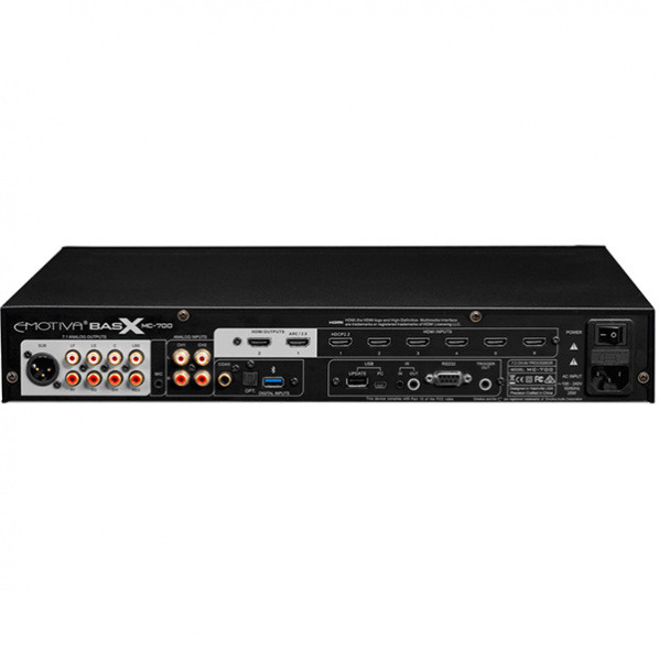 Emotiva MC-700 это превосходный бюджетный AV процессор. Данная модель имеет декодеры: Dolby Digital, Dolby TrueHD, Dolby Pro Logic IIx, DTS, DTS HD Master Audio, DTS Neo:6. Emotiva MC-700 поддерживает 5.1- и 7.1-канальный объемный звук во всех возможных форматах. Покупая продукты компании Emotiva, вы получаете высококачественный продукт по приемлемой цене.