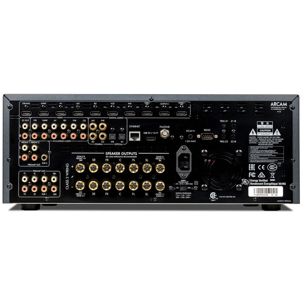 Arcam FMJ AVR850 Black AV-ресивер представляет собой самую мощную модель в обновленной серии AV-ресиверов Arcam. Аппарат поддерживает формат 3D-звука Dolby Atmos (5.1.2-канальная конфигурация), но может работать и в 7.1.4-канальном режиме, для реализации которого требуется дополнительный 4-канальный усилитель мощности или пара 2-канальных оконечников. Заявлена поддержка кодека DTS:X, который будет доступен после выхода новой прошивки.