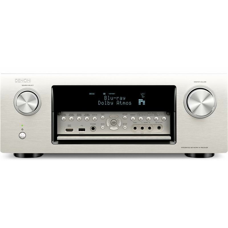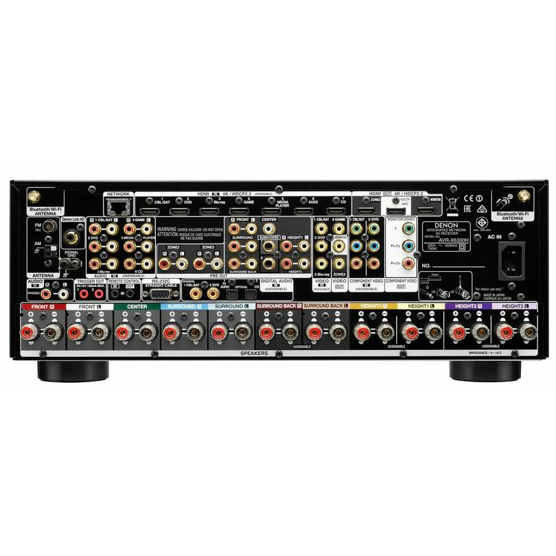 Denon AVR-X6300H - 11.2-канальный AV-ресивер поддерживает инновационный формат Dolby Atmos, обеспечивающий 3D-саунд c точной локализацией эффектов в пространстве. Суть заключается в том, что звуку задается та же траектория, что и движущимся на экране объектам. Особенно впечатляет своим реализмом перемещение объектов по вертикали. Модель использует следующие конфигурации каналов для Dolby Atmos: 5.1.2 или 5.1.4 и 7.1.2 с доп. усилителем. Третья цифра указывает на количество потолочных громкоговорителей или специализированных спикеров. Калибрует АС система Audyssey MultEQ XT32 (Pro Ready), а система LFC корректирует бас и препятствует его проникновению в смежные комнаты. В центр лицевой панели встроен 2-строчный FL-дисплей. В левую часть вынесен селектор входов и кнопка питания, в правую – ручка громкости. Элементы управления находятся под крышкой. Там же имеется вход HDMI (2.0), USB с поддержкой iPod/iPhone/iPad, гнездо для наушников (6,3 мм), AV-разъемы и мини-джек для калибровочного микрофона. Для усиления используются 11 сильноточных дискретных блоков мощностью по 140 Вт (8 Ом). Беречь электроэнергию помогает режим Eco Mode. На экран выводится счетчик, демонстрирующий сокращение ее потребления. Поддерживается видео в разрешении 4K (60 Гц). Доступен апскейлинг любого видео до 1080p и 4K (60 Гц).