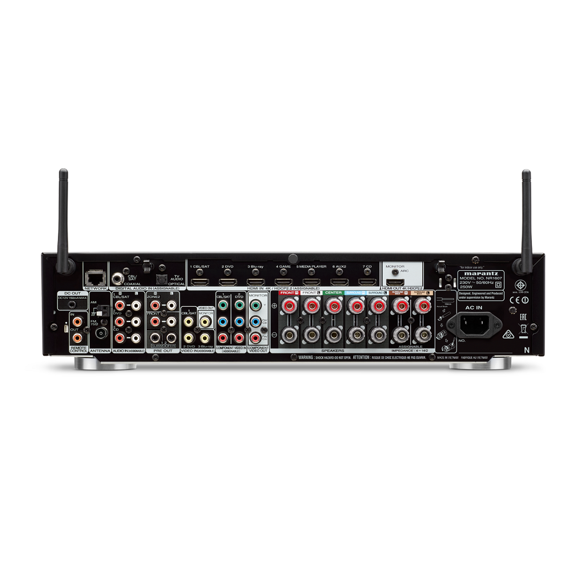 К неоспоримым достоинствам модели Marantz NR-1607 относится функциональность и широкие коммутационные возможности. Как и большинство современной мультимедийной аппаратуры AV-ресивер поддерживает видео 3D и 4K с частотой 60 Гц и наличием соответствующих разъемов HDMI 2.0. Кроме мультимедийных интерфейсов с протоколом защиты HDCP 2.2, аппарат оснащен целым рядом аналоговых и цифровых аудио/видеоразъемов. Для удобного подключения USB-накопителей цифровой порт разместился на лицевой панели. Кроме обеспечивающего высокоскоростную проводную коммутацию с удаленным хранилищем, компьютерным оборудованием или онлайн-сервисами интерфейса Ethernet техника имеет сразу несколько беспроводных модулей связи.