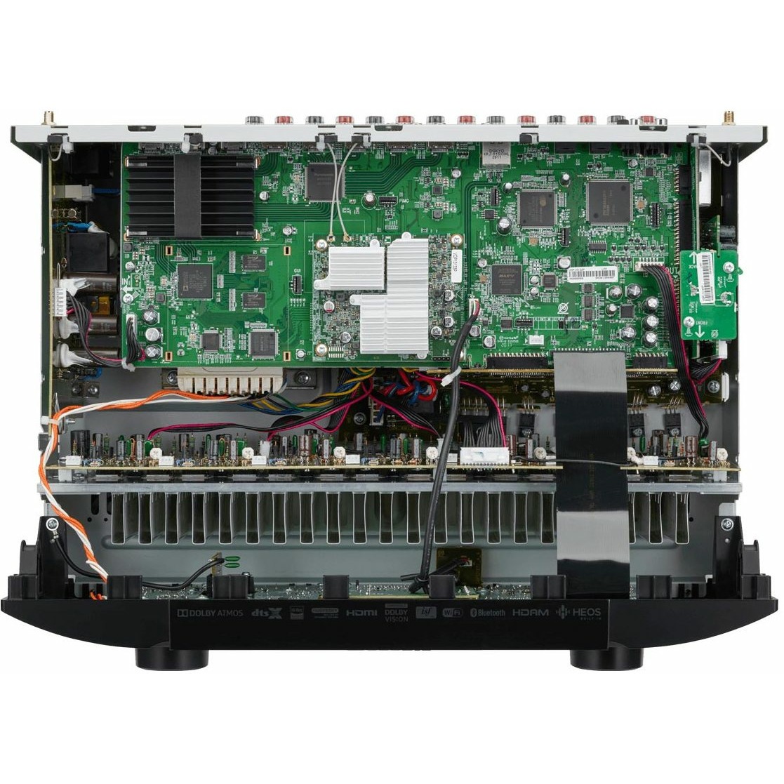 | Входы | 6 HDMI (2.0a) , USB (24 бит/192 кГц / DSD 2,8/5,6 МГц), 3 композитных видео (один на передней панели), 2 компонентных, 4 линейных RCA (один на передней панели), Phono (MM), 2 коаксиальных, 2 оптических, Ethernet-порт, RS232, ИК-вход, управление, вход измерительного микрофона |