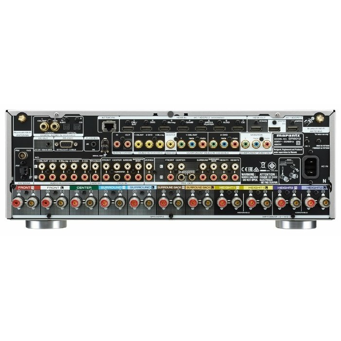 Обычно SR6012 работает с 5.1.4 или 7.1.2-канальной конфигурацией колонок и с двумя сабвуферами для более гладкого и динамичного баса, выдавая захватывающий 3D звук форматов Dolby Atmos и DTS:X.