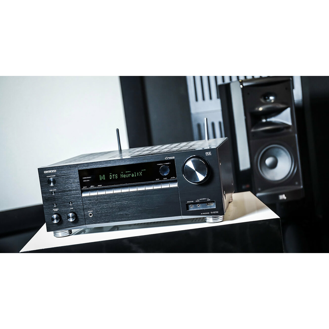 Аппарат имеет на борту модули Bluetooth, Wi-Fi (два диапазона), поддерживает AirPlay и платформу Chromacast built in для беспроводного аудиостриминга, позволяющую задействовать устройство с голосовым помощником Google Assistant. Доступен протокол DTS Play-Fi для передачи музыки через приложение на ресивер, беспроводные колонки и прочие компоненты, а также технология FlareConnect, транслирующая музыку в высоком качестве беспроводным способом с любого источника в любое помещение, где имеются соответствующие АС. При этом через приложение Onkyo Controller обеспечивается полное мультирум-управление. Ресивер имеет встроенную поддержку online-сервисов Deezer, TIDAL, Spotify, TuneIn и Amazon Music. По локальной сети и USB проигрываются DSD (до 5,6 МГц), FLAC, WAV, AIFF, ALAC до 24 бит/192 кГц и Dolby TrueHD.
