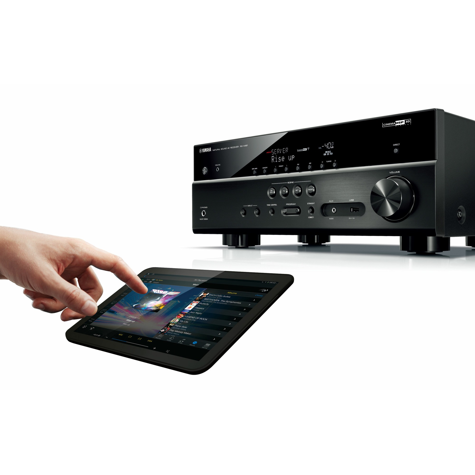 AV-ресивер поддерживает приложение Yamaha AV Controller, которое можно загрузить с iTunes App Store или Google Play. AV Controller позволяет включать/выключать питание, регулировать громкость, выбирать источники сигнала и режимы DSP, а также управлять другими функциями ресивера с iPhone или мобильных устройств на платформе Android. Кроме того, вы можете использовать один из 23 языков и настраивать интерфейс в соответствии со своими потребностями — прятать неиспользуемые пиктограммы, переименовывать функции. Имеется также версия приложения для планшета.