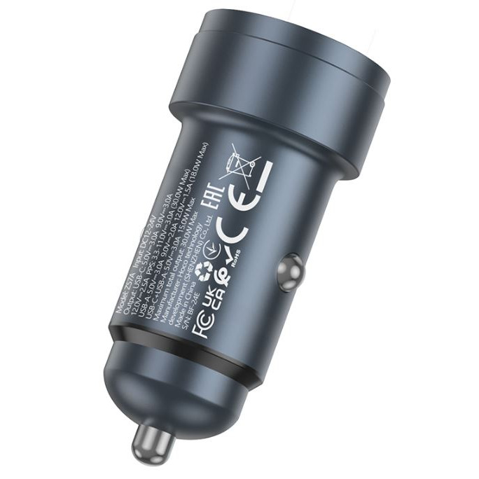 | Тип | Автомобильное зарядное устройство Hoco, 30Вт, USB, Type-C, Z57A, металлический серый, коробка |