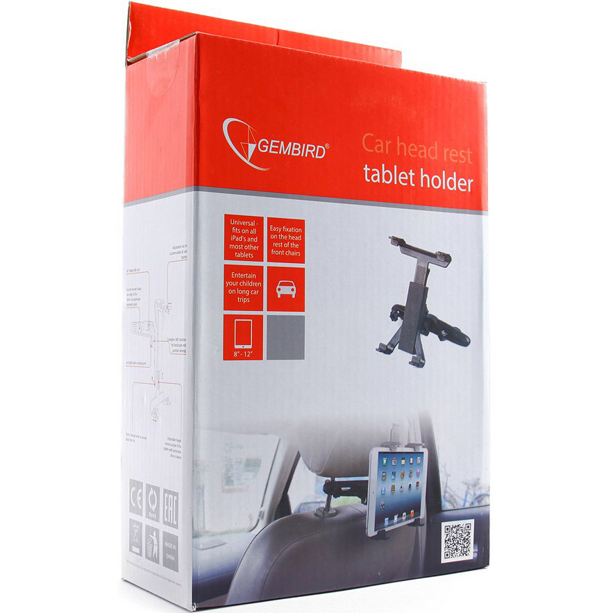 Автомобильный кронштейн для планшетного компьютера с креплением на подголовнике Gembird TA-CH-002 имеет легкое крепление на подголовник переднего сиденья и подходит для всех моделей iPad и большинства других устройств. В связи с бурным развитием технического прогресса, абсолютно каждый современный человек всё больше "обрастает" большим количеством различных новомодных девайсов и гаджетов, и активно пользуется всем этим благом повсеместно. Среди таких гаджетов несомненно самым популярным и востребованным абсолютно всеми является конечно же мобильный телефон. Универсальный автодержатель Gembird TA-CH-002 для планшета, крепление к подголовнику - это универсальный держатель для любого вида планшетов, удобство которого заключается в возможности его крепления на стойки подголовника в автомобиле, что позволяет развлечь ребенка и других пассажиров в дороге, не отвлекаясь от процесса вождения автомобиля. Мягкие амортизирующие вставки крепления надежно и мягко фиксируют девайс диагональю дисплея от 8 до 12 дюймов.