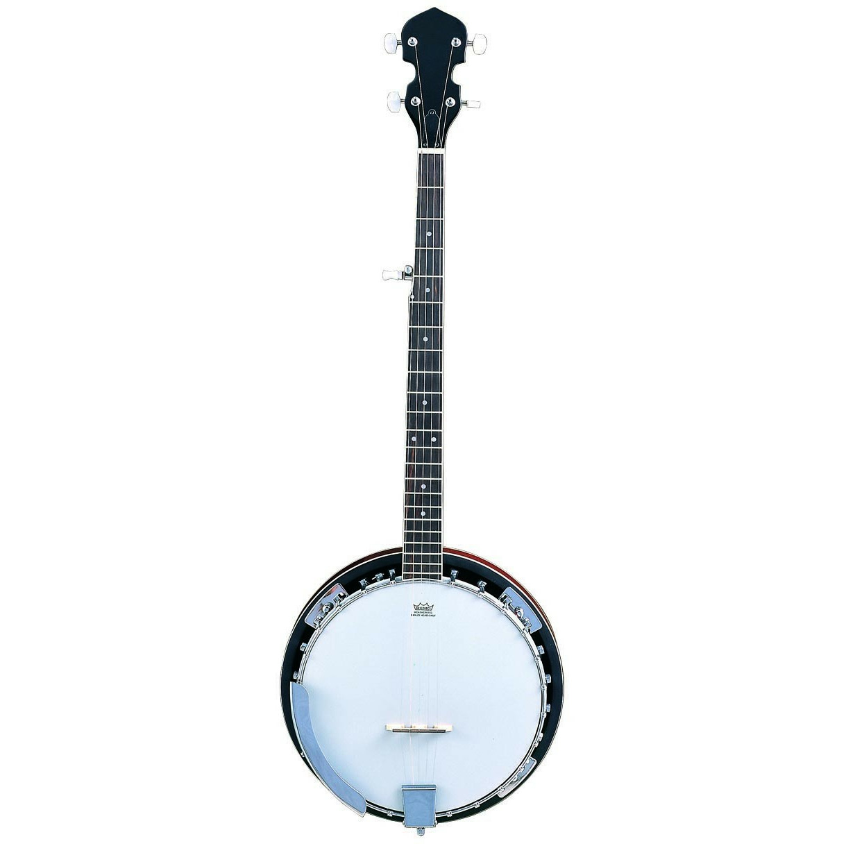 Банджо - струнный щипковый музыкальный инструмент с корпусом в виде бубна и длинной деревянной шейкой с грифом, на котором натянуто от 4 до 9 жильных струн. Род гитары с резонатором (расширенная часть инструмента крыта кожей, как барабан). Томас Джефферсон упоминает о банджо в 1784 году - вероятно, инструмент был завезен в Америку черными невольниками из из Западной Африки, где его предшественниками были какие-то арабские инструменты. В XIX веке банджо стал использоваться менестрелями и таким образом проник в ранние джазовые коллективы в качестве ритмического инструмента. В современной Америке словом банджо обозначается либо его теноровая разновидность с настроенными по квинтам четырьмя струнами, нижняя из которых - до малой октавы, либо пятиструнный инструмент с иной настройкой. Игра на банджо осуществляется с помощью плектра.