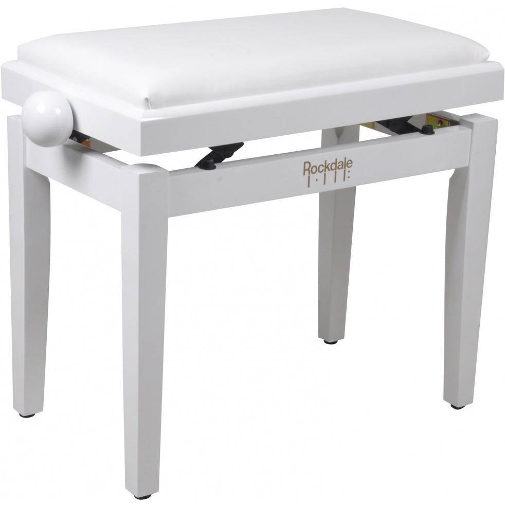 ROCKDALE 5111_W – удобная и прочная банкетка для пианиста с регулируемой высотой. Модель имеет элегантный классический внешний вид. Форма банкетки – традиционная прямоугольная, размер сиденья: 55 см х 33 см. Высоту можно настроить от 48 до 58 см, приподняв сиденье над деревянным каркасом с помощью удобного поворотного регулятора сбоку. Четыре прочные прямоугольные деревянные ножки позволяют устойчиво расположить банкетку. Сверху сиденье имеет износостойкое мягкое покрытие. Модель представлена в элегантном белом цвете.