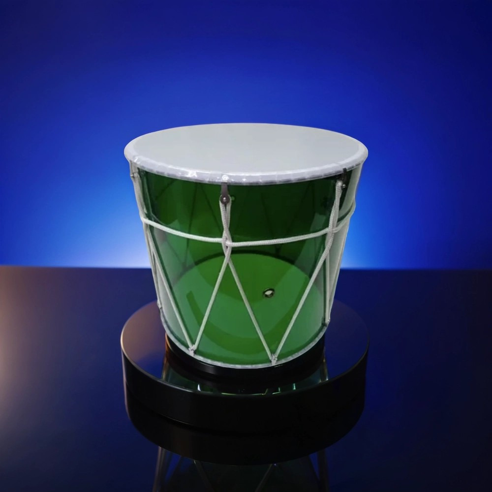 кавказский барабан (дхол) диаметром 13 дюймов (33 см) с корпусом из зелёного прозрачного плексигласа и белыми мембранами из пластика РЕТ. В комплекте идёт фирменный чехол для хранения и транспортировки.