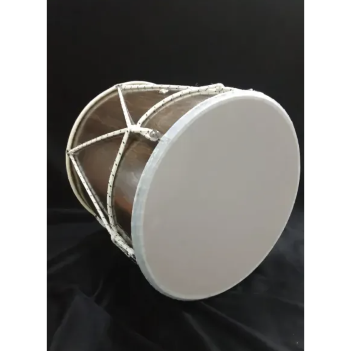 это кавказский барабан диаметром 14 дюймов (35 сантиметров). Инструмент отличается комбинированной мембраной и красной отделкой