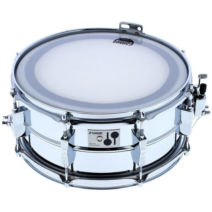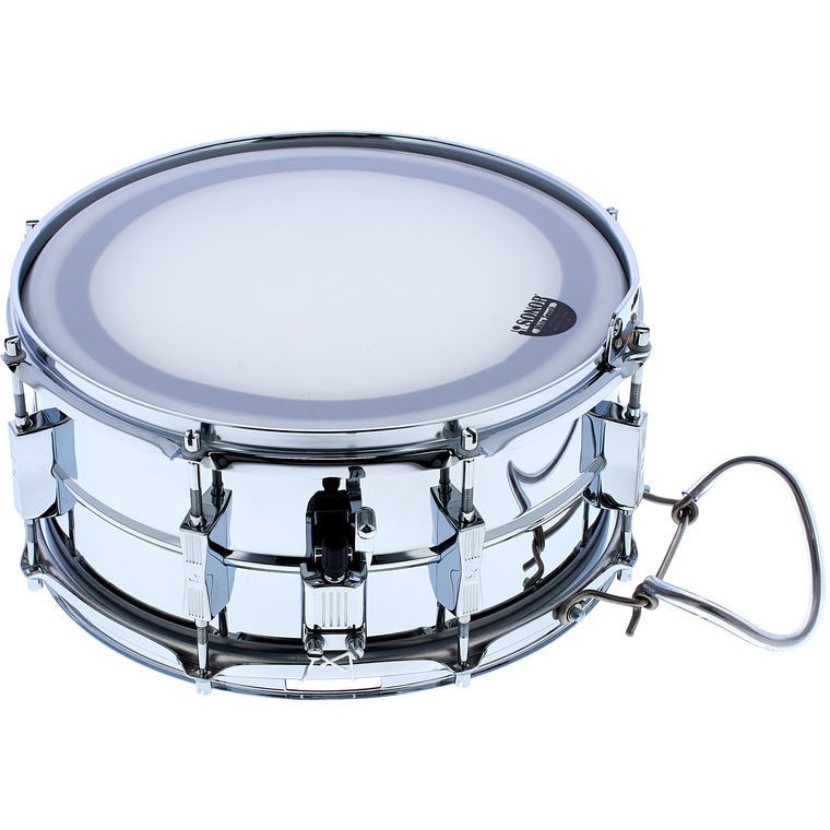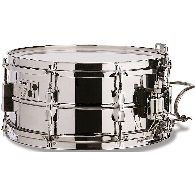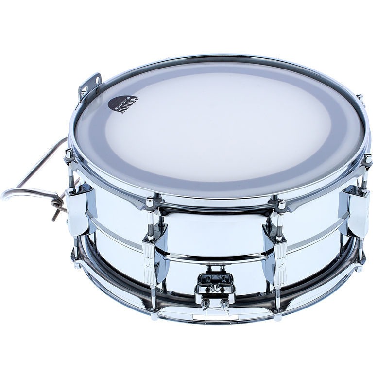 Маршевый барабан по сравнению с оркестровым имеет вытянутую форму, пластик обычно натянут очень сильно. Такие барабаны обеспечивают отрывистый и чистый звук. Для маршевых барабанов существуют особые требования к пластику, так как эти барабаны используют обычно на улице: необходимо, чтобы пластик стойко переносил различные погодные условия (перепады температуры и влажности), лучше всего с этим стравляются кевларовые пластики. Корпус маршевых барабанов выполнен обычно из алюминия, а струны – из синтетических материалов. Барабан имеет такую конструкцию, что железо нигде не соприкасается с обечайкой, что помогает предотвратить деформацию обечайки из-за сильного натяжения пластика. В нижних частях барабана могут размещаться специальные пластины для регулирования направления звука. Конструкция маршевого барабана разработана специально для игры в движении.