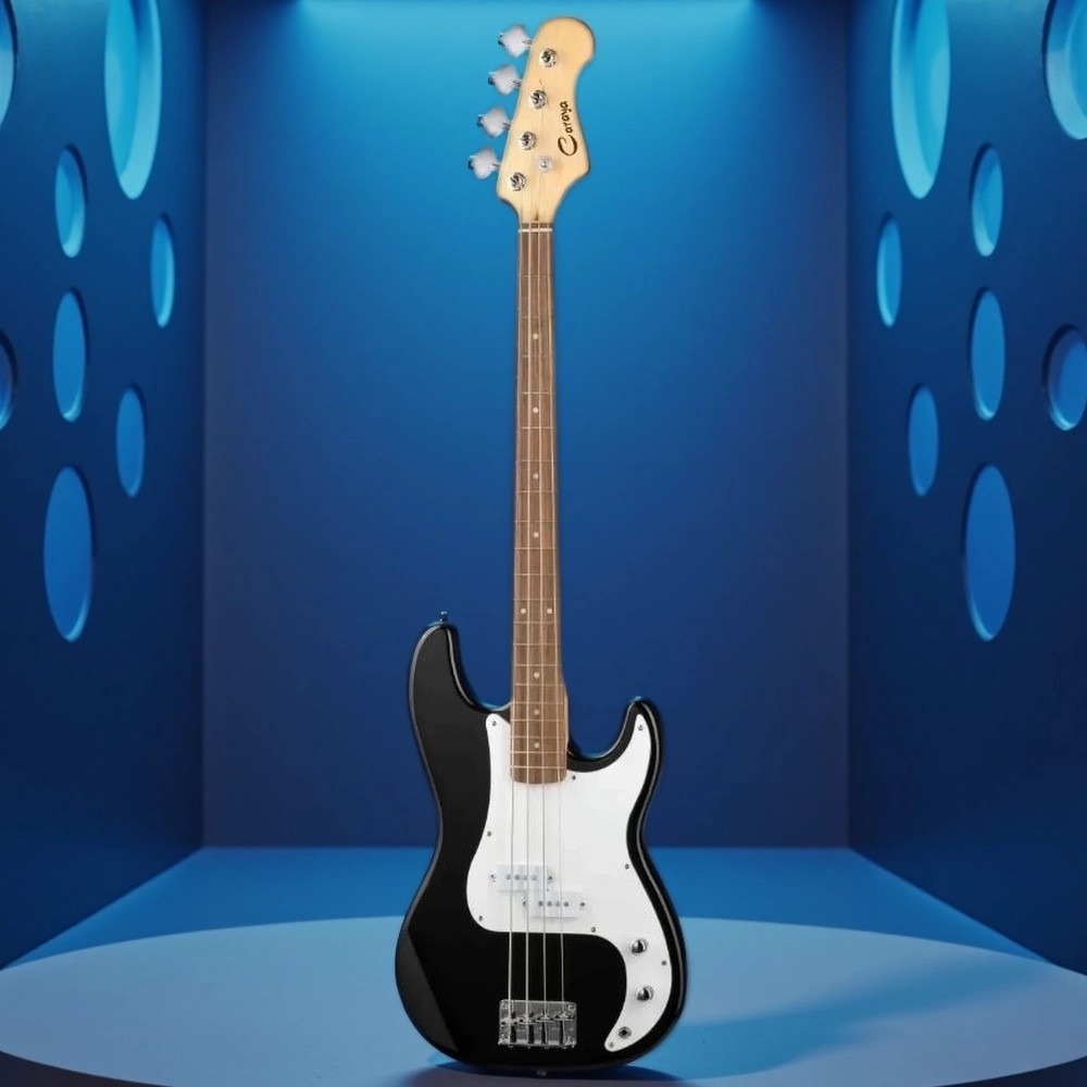 Caraya B300BK - электронная бас-гитара, выполненная в классической форме Precision bass. Она привлекает внимание не только доступной ценой, но и хорошей функциональностью. Помимо удобной формы корпуса, инструмент имеет фиксированный бридж и гриф, выполненный из клена, который оснащен палисандровой накладкой. При этом корпус оборудован одним регулятором громкости и одним регулятором тона. Также стоит отметить универсальную черно-белую расцветку, которая хорошо будет смотреться как на сцене, так и в студии