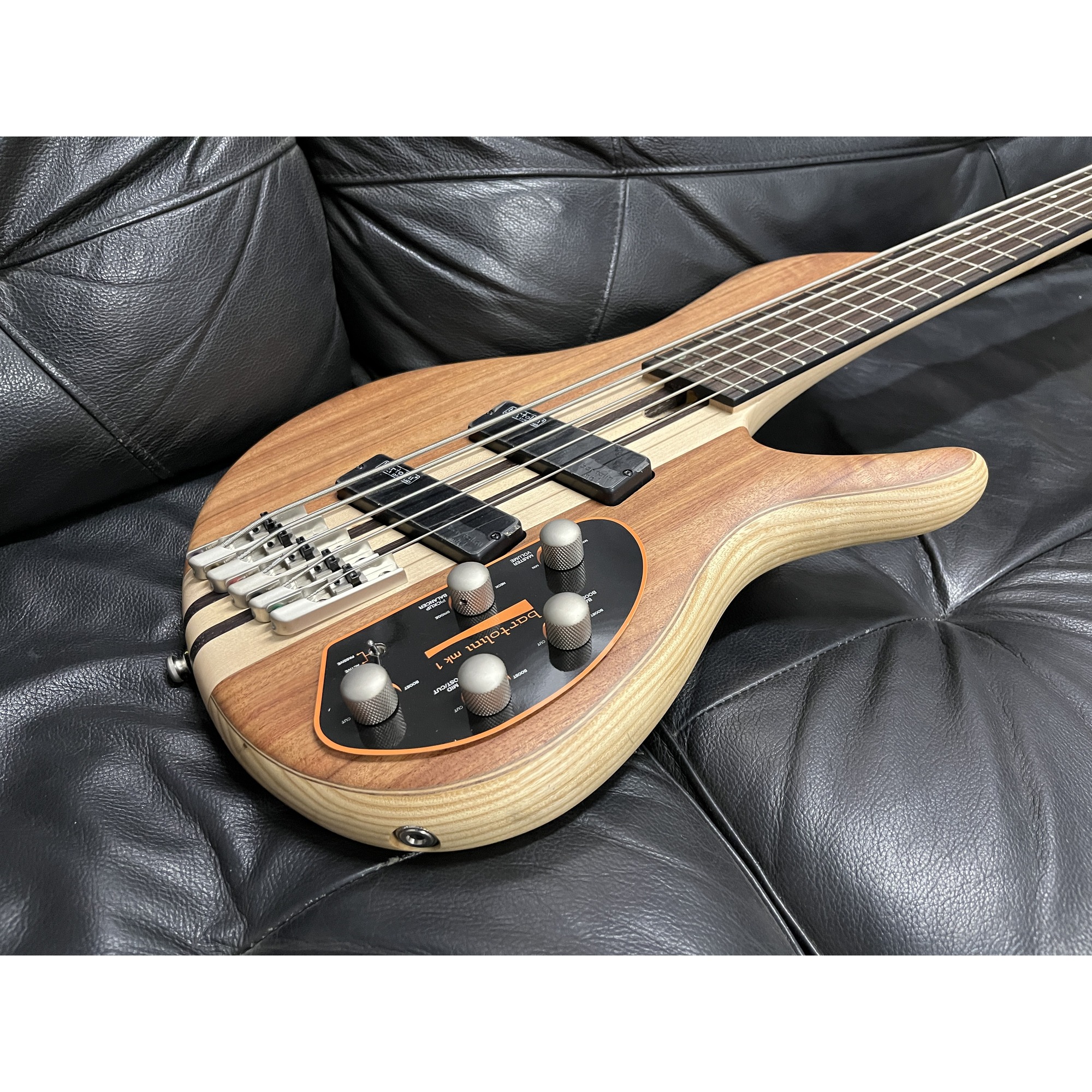 Африканская древесина панга панга имеет характеристики схожие с венге и производит плотное, последовательное звучание, которое отлично сочетается со сквозной конструкцией крепления грифа.