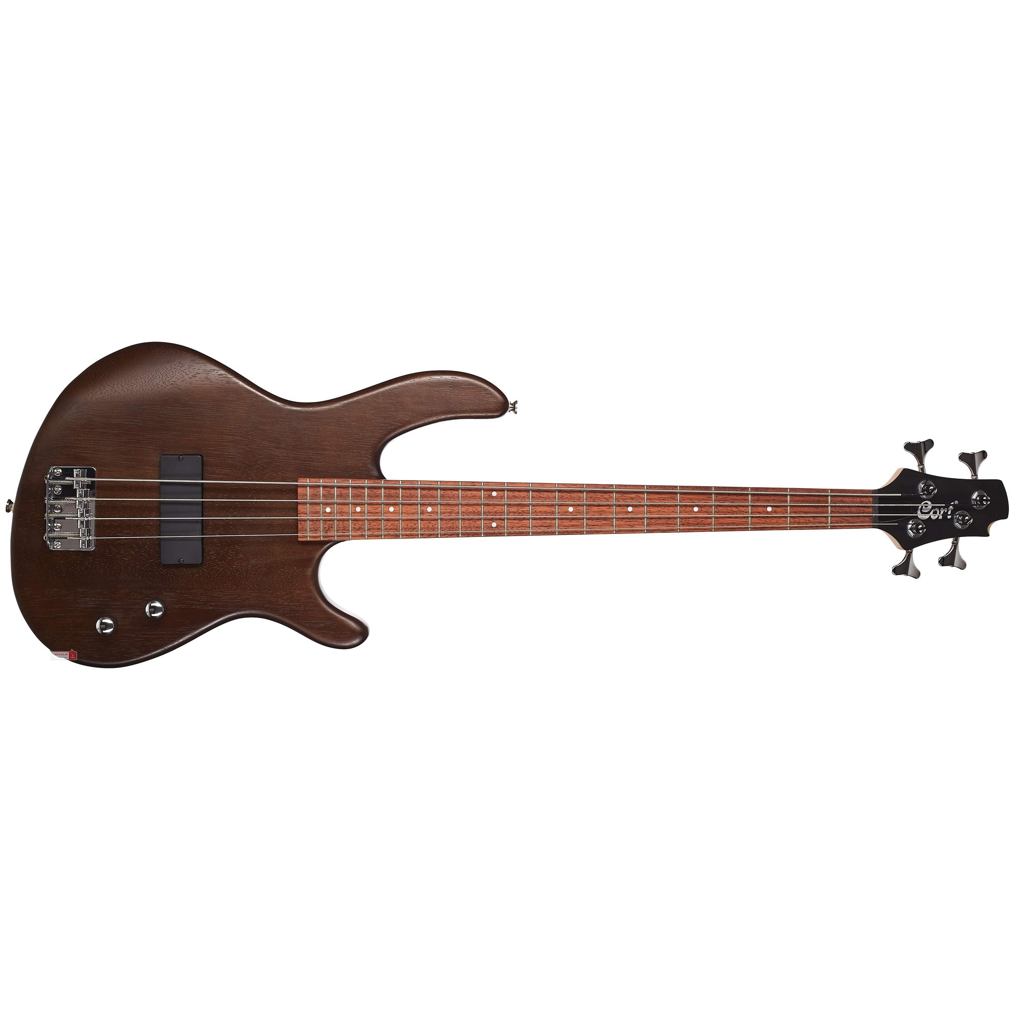 Бас-гитара Cort имеет уменьшенную до 762 мм мензуру, 22 лада и 4 прочных нейлоновых струны.