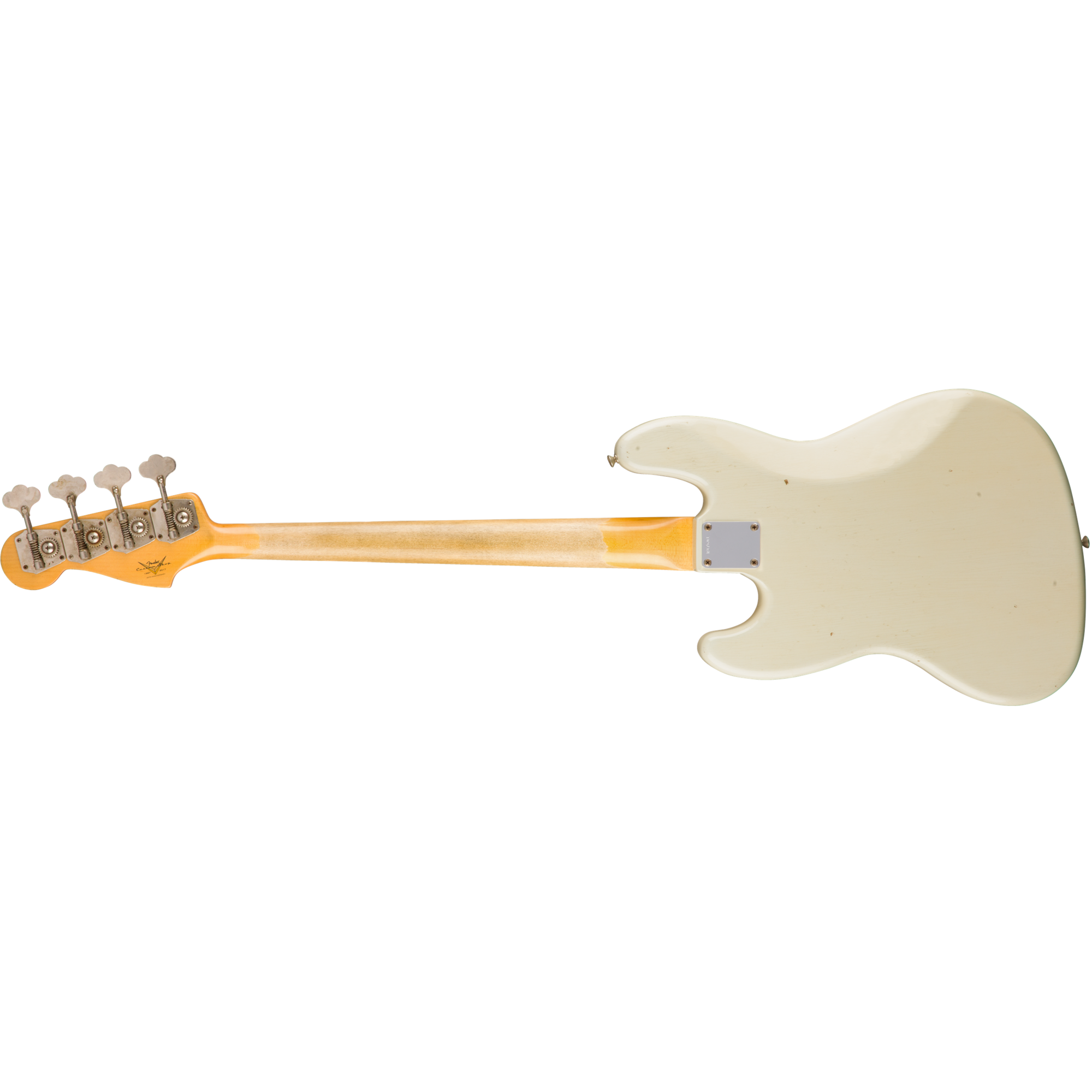 Дека бас-гитары изготовлена из двух кусков ольхи, форма деки - Jazz Bass. На деку установлены два звукоснимателя (SS) в положении "бридж" и "нек", это модели Custom Shop Hand-Wound Single-Coil Jazz Bass. Органы управления - Volume 1. (Neck Pickup), Volume 2. (Bridge Pickup), Master Tone. Бас-гитара оснащена кленовым грифом с накладкой из отборного палисандра (ААА). Крепление грифа к деке выполнено на болтах (х 4). На деку установлен фиксированный бридж 4-Saddle American Vintage Bass. Количество ладов грифа - 20, тип ладов - Medium Jumbo.