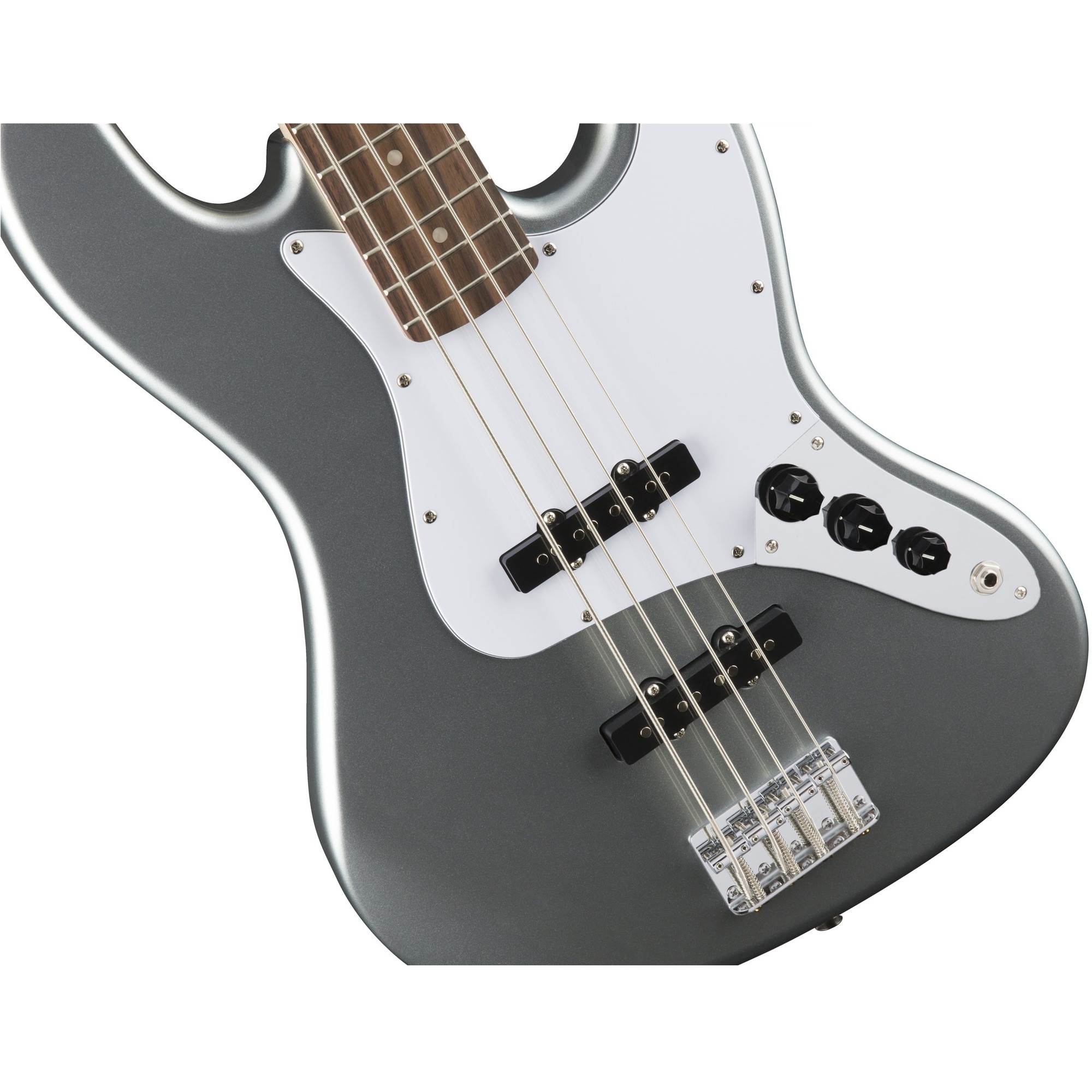 FENDER SQUIER AFFINITY JAZZ BASS LRL SLS – лучшее сочетание цена/качество среди современных бас-гитар, четырехструнная бас-гитара от знаменитого американского бренда с мощным звучанием, созданная для быстрой и точной игры. Модель знаменита своим прекрасным звучанием, гибкостью настроек и комфортом при игре. Корпус инструмента выполнен из ольхи с полиуретановым покрытием. Гриф – кленовый, профиля «С». Мензура – 34’’, на грифе 20 ладов Medium Jumbo. Особенность обновленной модели – накладка на гриф из терминалии с инкрустацией белыми точками. За классический звук инструмента отвечают два сингла: Standard Jazz Bass® и Jazz Bass®, выдающие узнаваемые гортанные низкие частоты и певучие верха. Настройка осуществляется двумя регуляторами громкости и регулятором тембра. Модель доступна в нескольких эффектных вариантах цветового исполнения. Представленная бас-гитара – элегантного серебристого цвета с трехслойным белым пикгардом и блестящей хромированной фурнитурой.