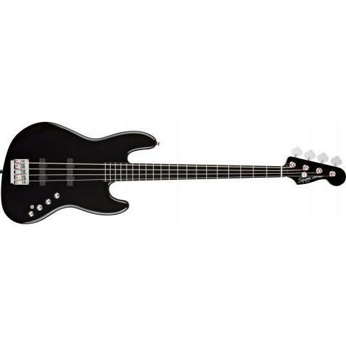 Squier Deluxe Jazz Bass IV Active (4 String) является четырёх-струнной бас-гитарой с активной электроникой. Корпус выполнен из липы, имеет легендарную форму Jazz Bass, цвет чёрный. Гриф выполнен из цельного куска клёна, накладка сделана из чёрного дерева, инкрустация боковая. Количество ладов 20, мензура 34 дюйма. Гитара снабжена двумя активными синглами Jazz Bass с регулятором громкости, 3х-позиционным эквалайзером и слэп-свитчем.
