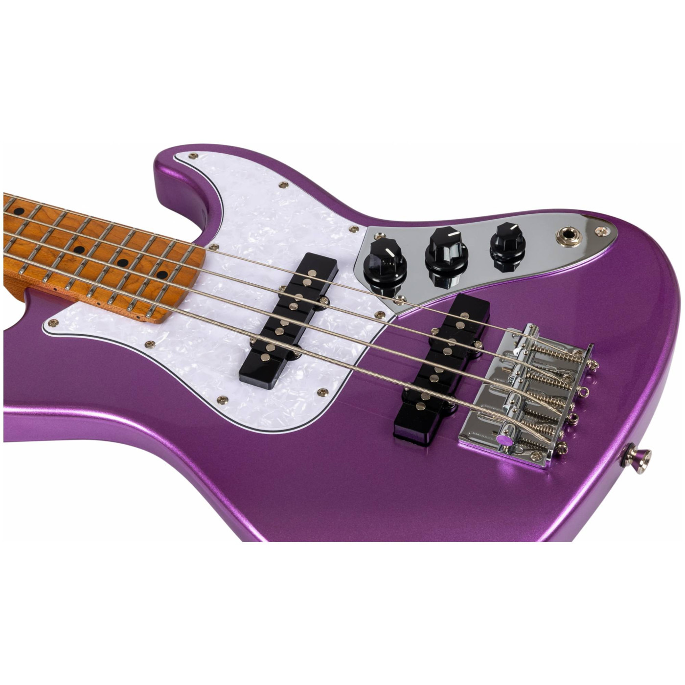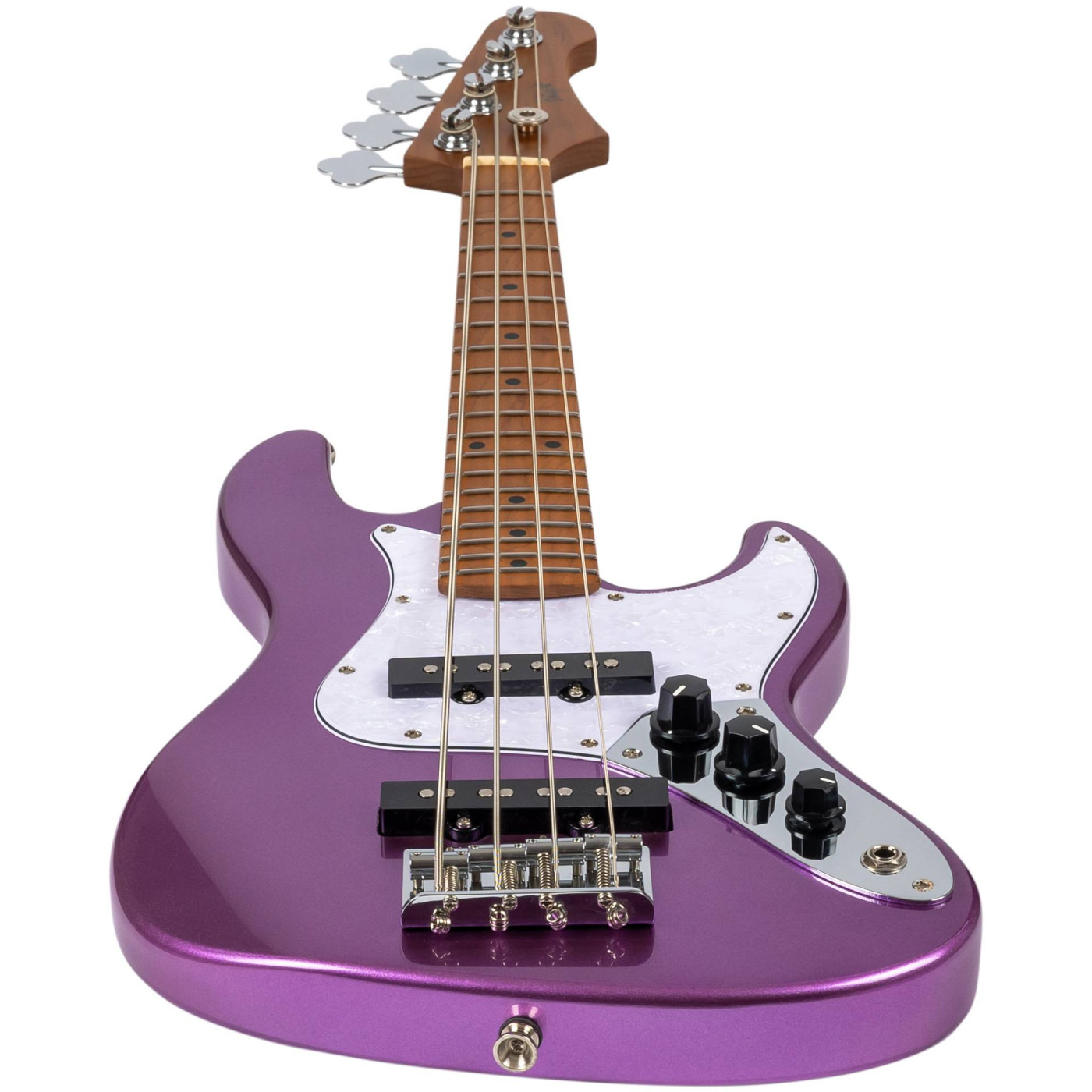 Верхняя дека Mini JB Bass выполнена из обожжённого тополя в фиолетовом цвете и с отделкой металлик, с белой накладкой, в результате получился великолепный музыкальный инструмент!