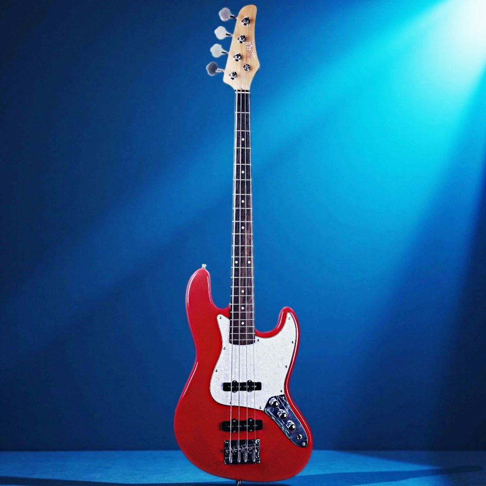REDHILL JB200/RD – четырехструнная бас-гитара из тополя, выполненная в красном цвете с белым перламутровым пикгардом.