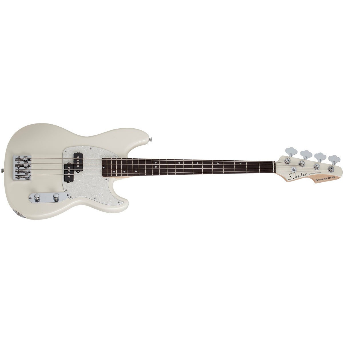 Schecter BANSHEE BASS OWHT - бас-гитара. Материал корпуса: Ольха. Материал грифа: клен армированные стержни из углеродного волокна. Накладка грифа: палисандр. Нековый звукосниматель: Schecter Diamond QPA. Регулировки: громкость тон. Цвет гитары: Olympic White