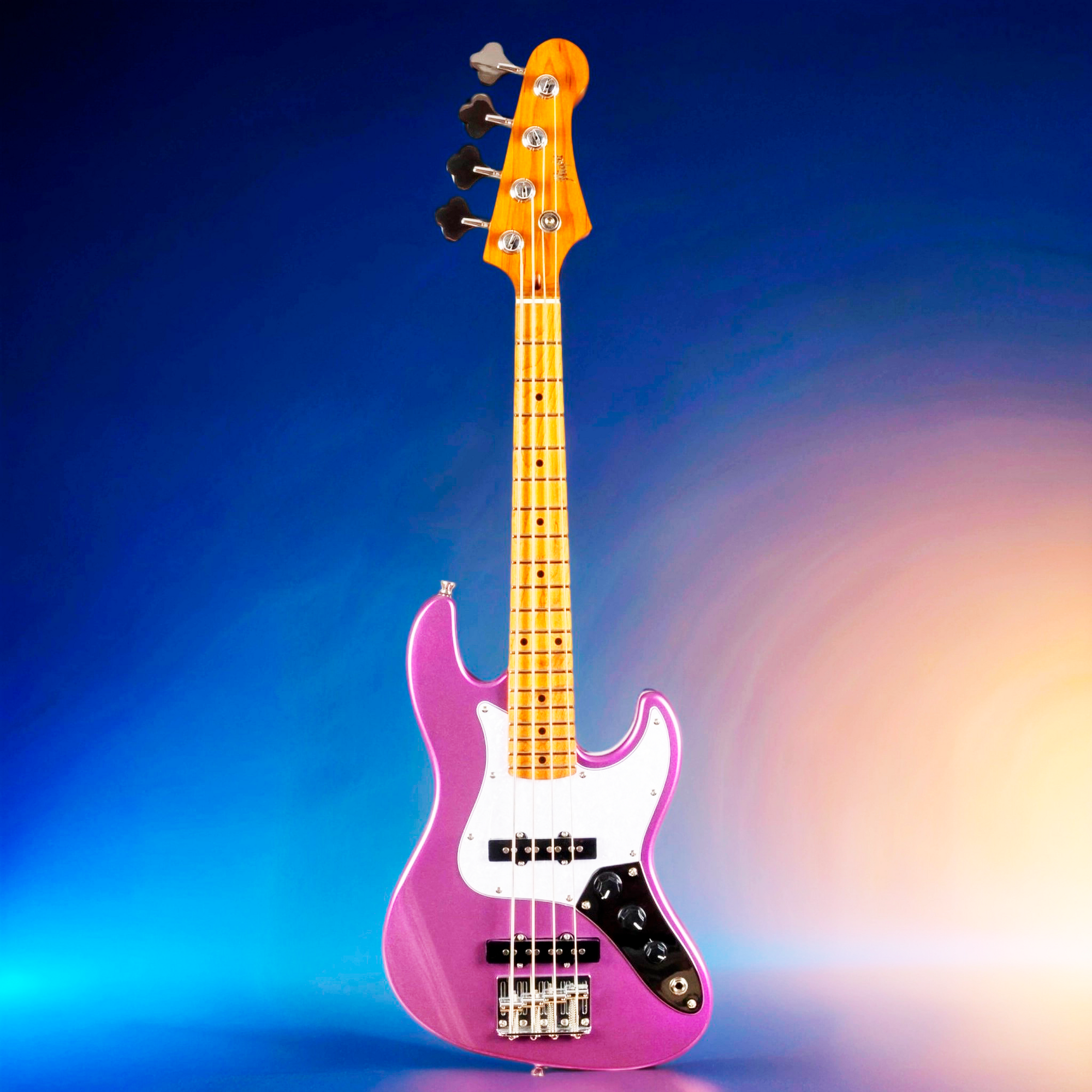 Верхняя дека Mini JB Bass выполнена из обожжённого тополя в фиолетовом цвете и с отделкой металлик, с белой накладкой, в результате получился великолепный музыкальный инструмент!