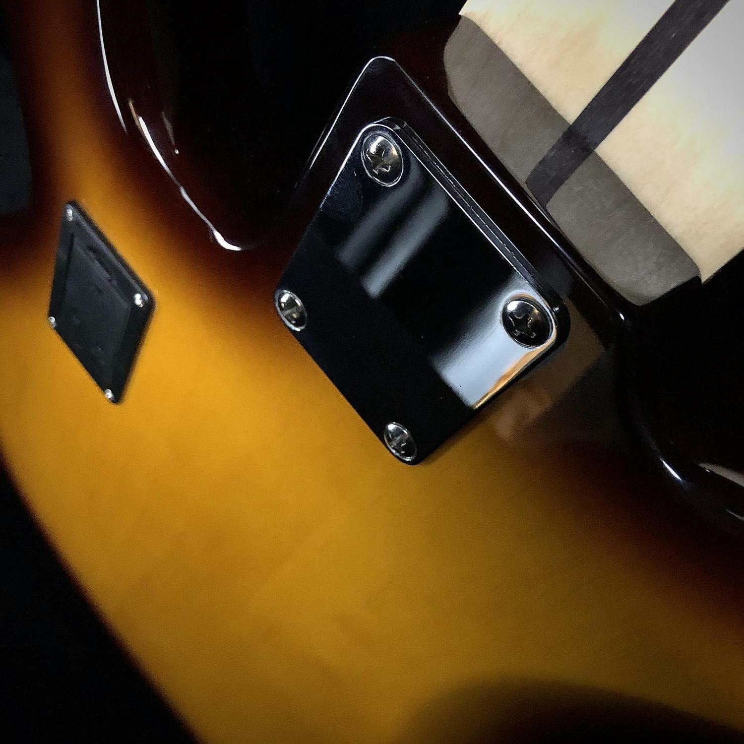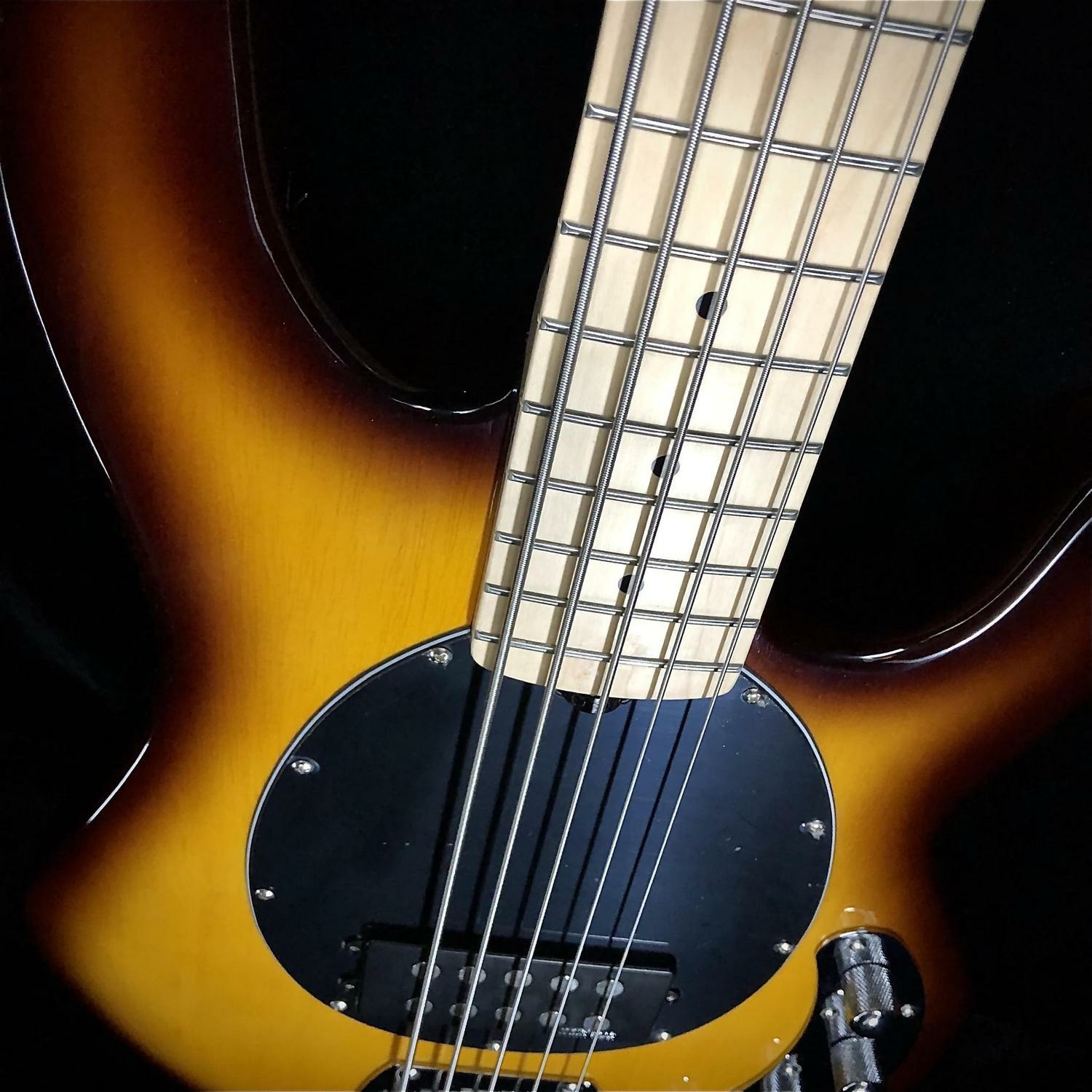 Vintage V965TSB - 5-струнная бас-гитара, форма корпуса MusicMan, корпус - тополь, гриф - клен, 1 хамбакер, 3-х полосный эквалайзер, цвет санберст. 5-струнный бас Vintage V96 олицетворяет собой концепцию качественно сделанного инструмента, предлагающего исключительные игровые возможности и полноценный динамический тональный диапазон для любого направления, будь то фанк, рок, диско или поп. Легкий корпус выполнен из восточного тополя, который отличается "мускулистыми" обертонами и гармоничным контентом с необычайной глубиной, теплотой и естественной чистотой высоких частот. Гриф и накладка выполнены из клена, крепление грифа - на болтах, маркеры ладов - в виде черных точек. Фурнитура полностью хромированная, включая регуляторы управления и открытые колки Wilkinson WJBL200. Акустическая универсальность этой прекрасно изготовленной бас-гитары весьма впечатляет, установленный в положении бриджа мощный звукосниматель Wilkinson WSM5 с двойной катушкой, который отличается огромным панчевым звучанием в СЧ диапазоне и чистым в ВЧ - одна из особенностей, которая сделала Vintage V96 столь популярным инструментом среди басистов во всем мире. Активная схема включает в себя регуляторы Volume, Bass, Middle и Treble. 3-полосный эквалайзер позволяет настроится на теплые, насыщенные тона, подчеркивая тональные параметры данного чрезвычайно универсального баса.