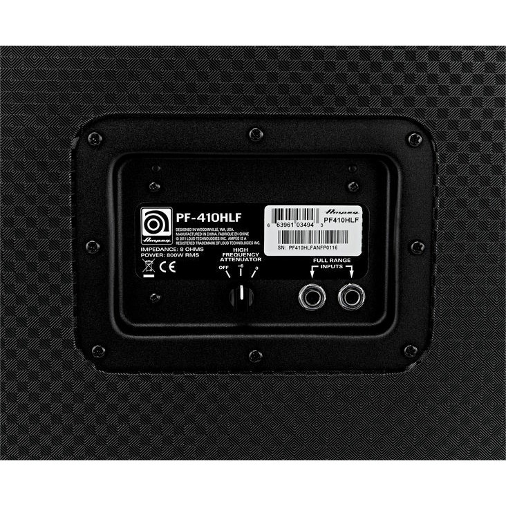 Ampeg PORTAFLEX PF-410HLF басовый кабинет, способен достичь частот вплоть до 30 Гц при уровне звукового давления в 130 дБ. На задней панели расположен трехпозиционный перключатель высокочастотных звуковых сигналов, предназначенный облегчить контроль над высокими частотами усилителя, наряду с двумя 1/4" входами. Да, этот кабинет весит чуть больше 33 кг, но две интегрированные боковые ручки, а также четыре съемные колесики-рендеринга делают этот аппарат портативным. И, наконец, PF-410HLF дополнит любой мощный басовый усилитель Ampeg, или любым другим аналогичной номинальной мощности и выходного импеданса.