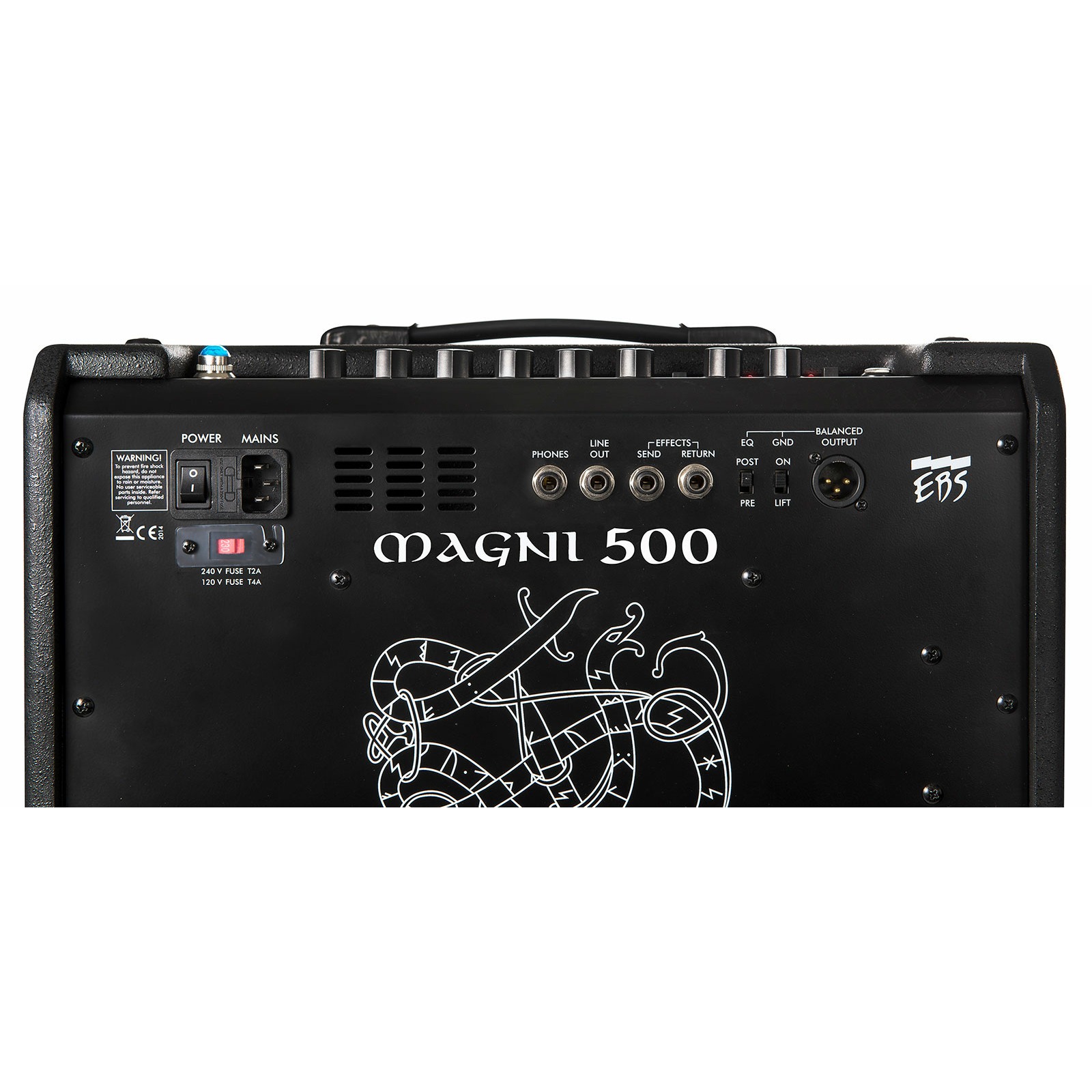 В комплект комбо EBS Magni 500 входит защитный чехол. Режимы питания переключаемые между 120 и 230В.