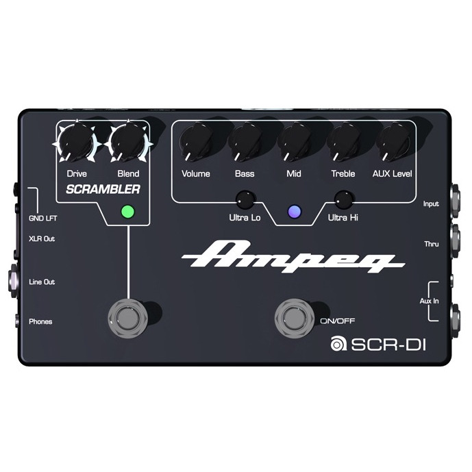 Ampeg SCR-DI BASS DI w/SCRAMBLER OVERDRIVE представляет собой одноканальный напольный басовый предусилитель, предназначенный для сцены и для записи. Этот DI обеспечивает регуляторы эквалайзера и Ampeg проприетарный Bass Overdrive Scrambler, оба из которых можно включать и выключать с помощью ноги. Также есть ультра опции Hi/Low и -15 дБ площадка перемычки, что делает устройство подходящим как для активных, так и пассивных бас-гитар.