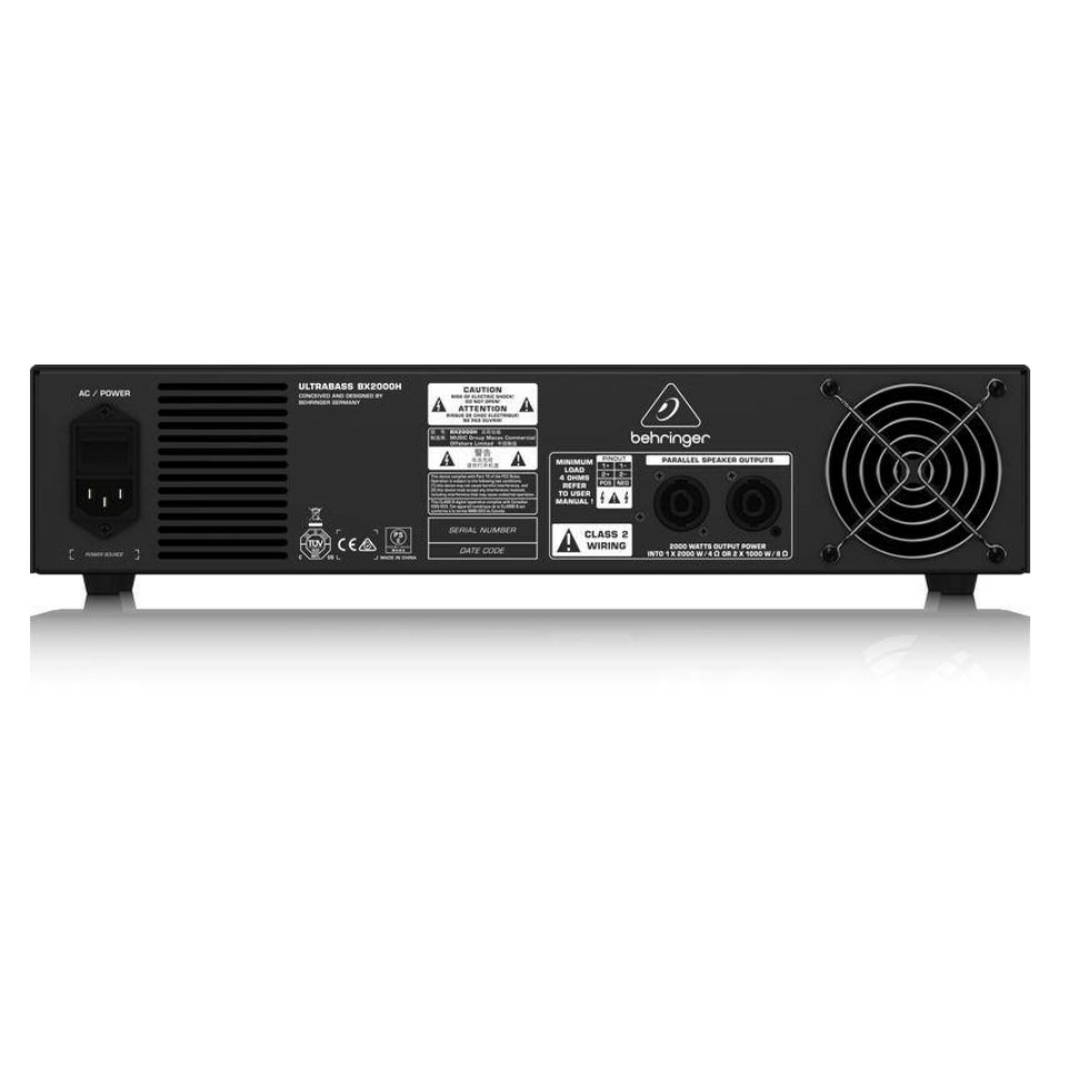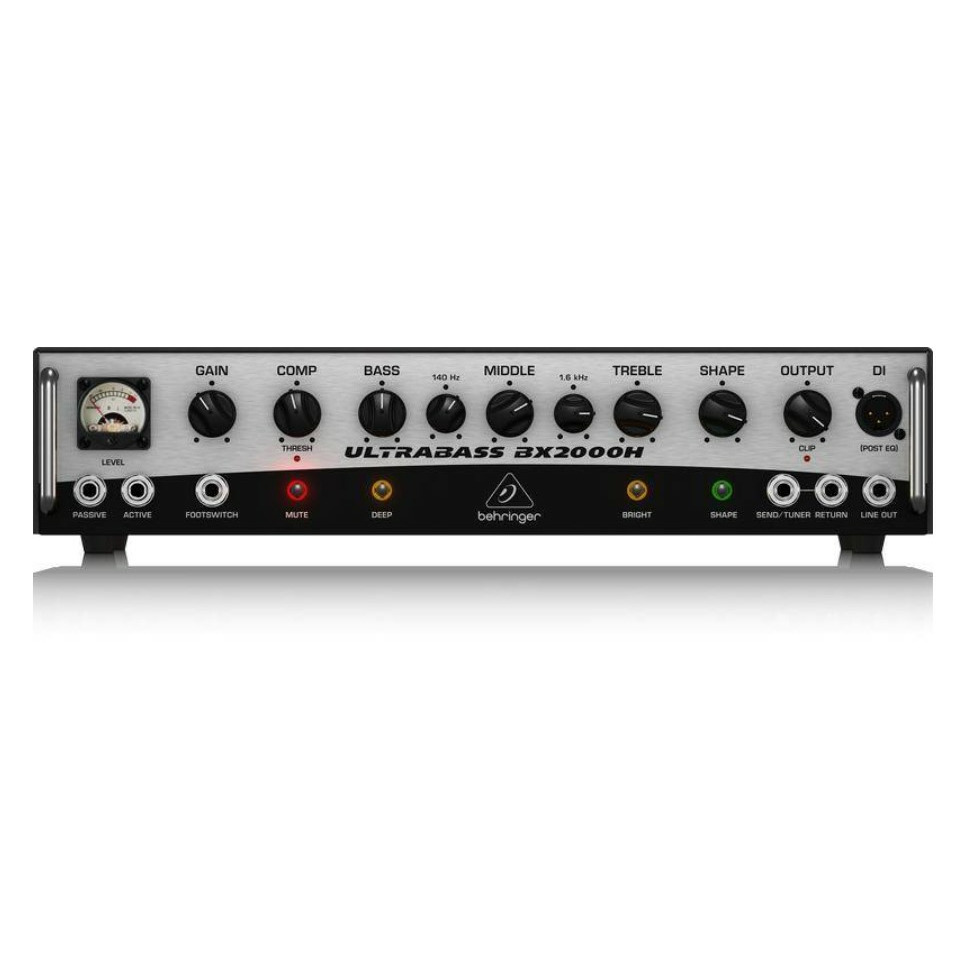 BEHRINGER ULTRABASS BX2000H - это двухканальный бас-гитарный усилитель типа "голова", мощностью 200 Вт. Усилитель оснащен двумя входными разьемами для подключения бас-гитар с активной и пассивной электроникой. Для настройки звучания доступен эквалайзер, компрессор, ручки регулировки входного и выходного уровня. Эквалайзер пятиполосный, он дает возможность настройки частот от 50, 140, 500, 1600 и 7500 Гц. Для создания и передачи мощного звучания усилитель оборудован высоковольтным транзисторным предусилителем, который дает ощущения аутентичного лампового звучания. Классический компрессор помогает срезать пики и увеличить сустейн, настроить идеальное звучание для игры \"слэпом\". Для подключения напрямую в микшер или звуковую карту предусмотрен балансный выход Direct Out. Кроме этого есть петля для использования внешних педалей эффектов, выходные разьемы для подключения акустических кабинетов и педали-контроллера. Для защиты электроники используется активная система охлаждения с переменной скоростью вентилятора и тепловая защита от перегрузки.