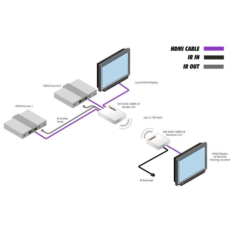 - Подключение до 8-ми источников сигнала при использовании дополнительных передатчиков EXT-WHD-1080P-LR-TX (поставляются отдельно), cистема работает в режиме коммутатора до 8×1