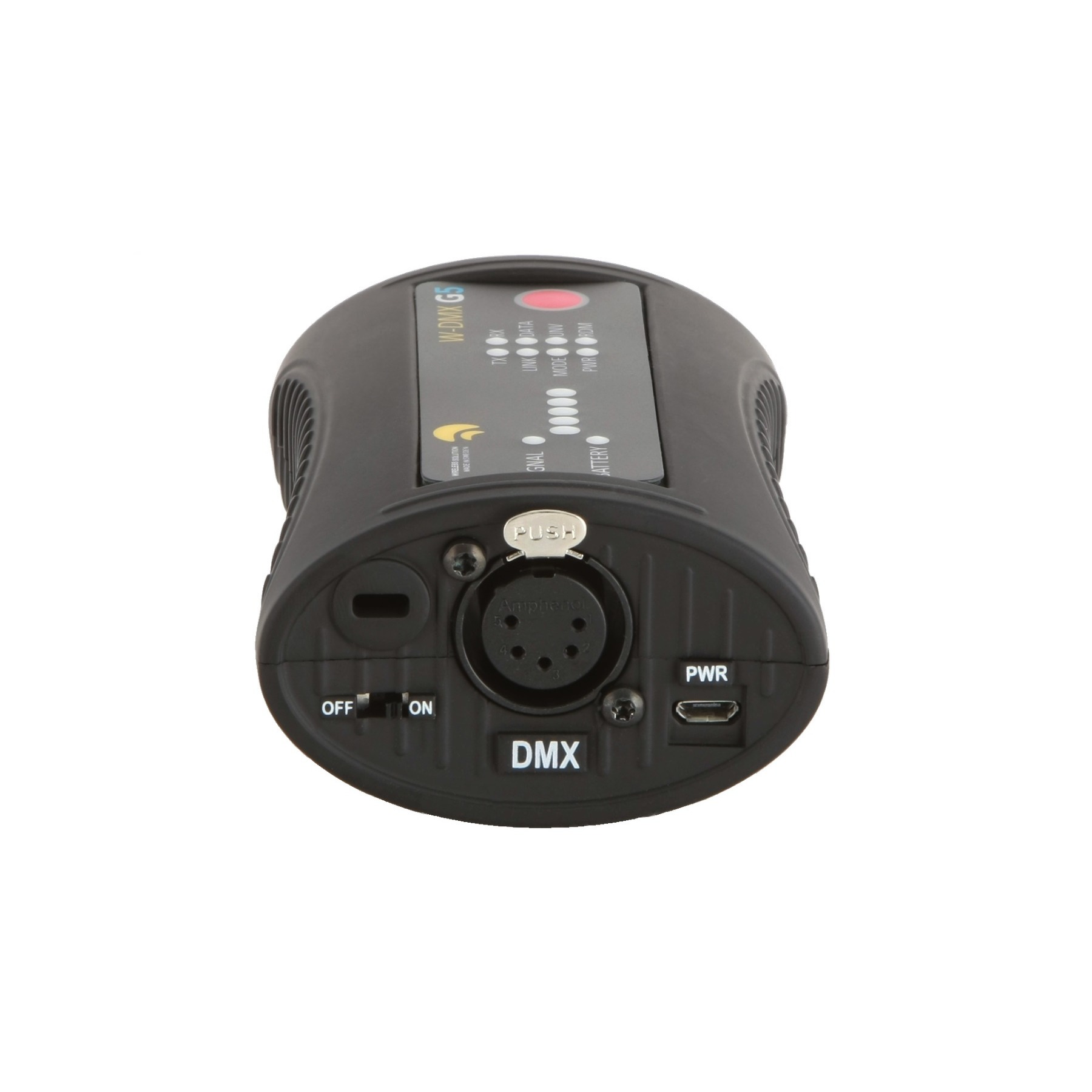Wireless Solution Micro R-512 G5 - самый компактный и удобный прибор, работающий в качестве приёмника 512 каналов протокола DMX по беспроводной связи. В приборе используется адаптивная технология скачкообразной перестройки частоты AFHSS (Adaptive Frequency Hopping Spread Spectrum), которая постоянно проверяет интерференционные помехи и быстро перебрасывает работу системы на свободный частотный канал. Без подключения к сети устройство способно работать до 8 часов от 4 батареек типа ААА. Также благодаря разъёму microUSB в качестве источника питания возможно использование устройств типа Power Bank.
