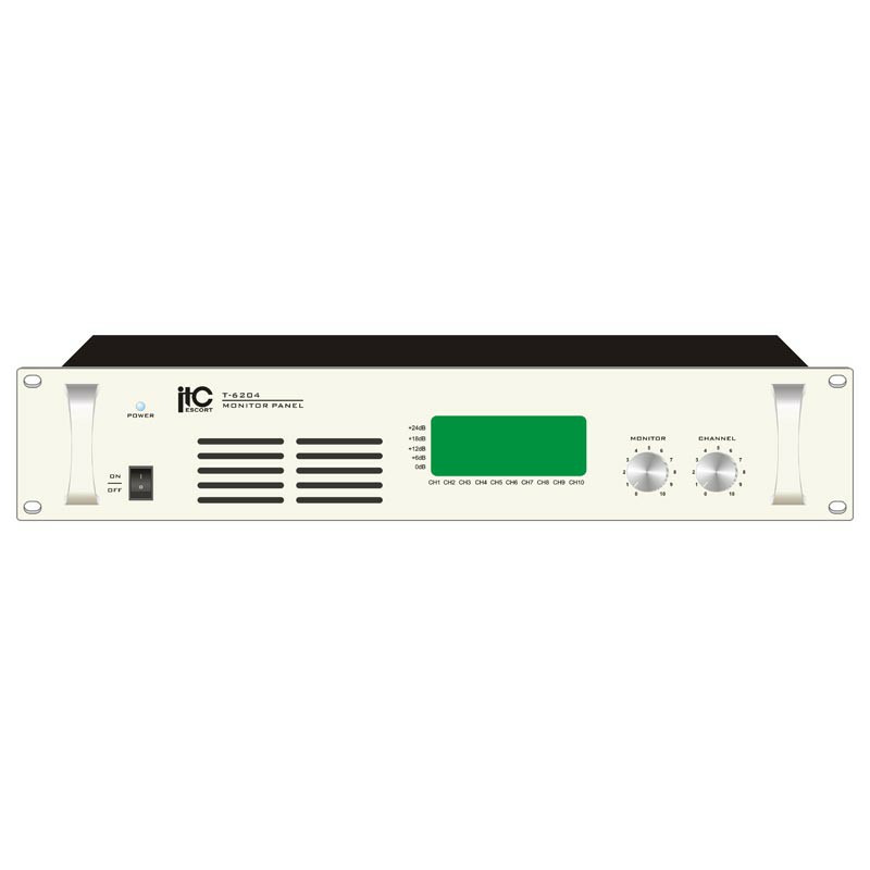 Блок контроля линий ITC ESCORT T-6204 входит в состав системы оповещения ITC-ESCORT и используется для построения систем автоматического аварийного оповещения и музыкальной трансляции на базе дополнительного оборудования. Данный блок предназначен для ручного и полуавтоматического контроля линий громкоговорителей (напряжение в линии 70/100В). Блок ITC ESCORT T-6204 осуществляет контроль 10 линий и может быть подключен как в начале, так и в конце контролируемых линии. При помощи ITC ESCORT T-6204 можно осуществить визуальный контроль уровня звука в линиях громкоговорителей, а также прослушать звуковой сигнал в линии при помощи встроенного громкоговорителя. Для прослушивания линии, ее необходимо выбрать при помощи селектора на передней панели. Питание блока ITC ESCORT T-6204 осуществляется от источника переменного напряжения 220В. Конструктивно блок выполнен в рэковом 19-дюймовом корпусе, предназначенном для монтажа в стандартный электротехнический шкаф.