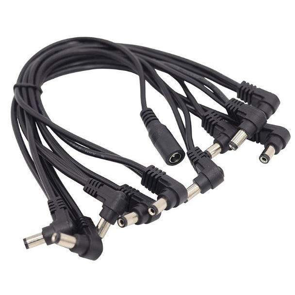 Это комплект из 10 кабелей питания постоянного тока (DC) с угловым разъёмом (angled head), предназначенный для последовательного подключения (daisy chain) гитарных педалей эффектов. Позволяет организовать питание нескольких педалей от одного источника.