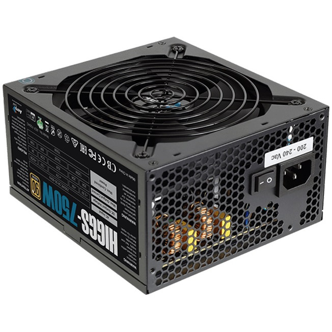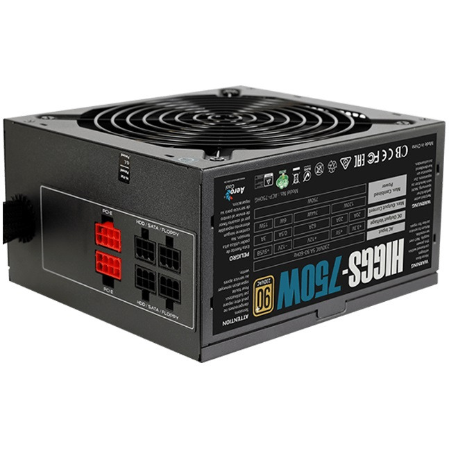 Aerocool HIGGS-750 полумодульный блок питания. Эффективность составляет 90%+, APFC. Бесшумный и мощный 14-см вентилятор с «умной» системой управления скоростью.