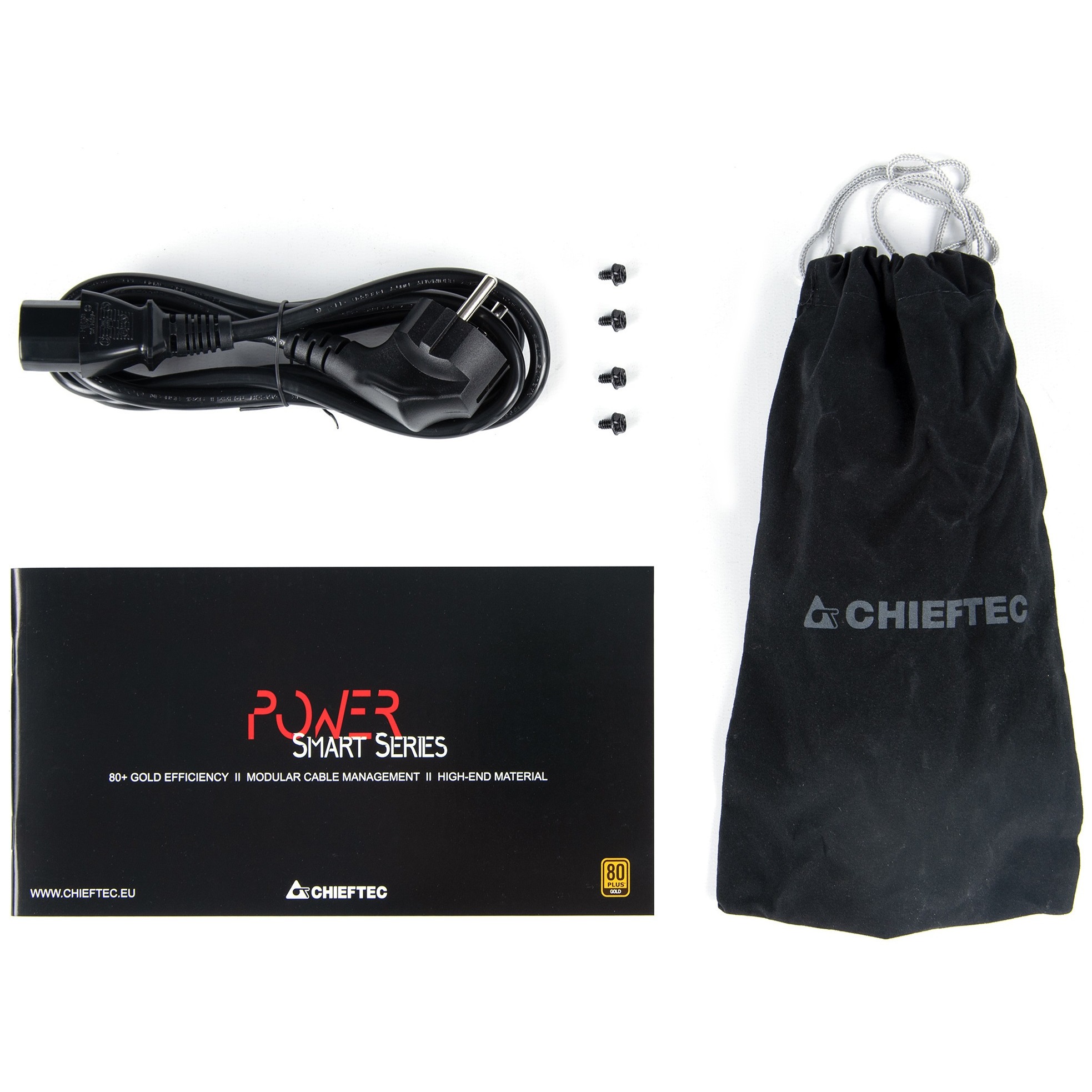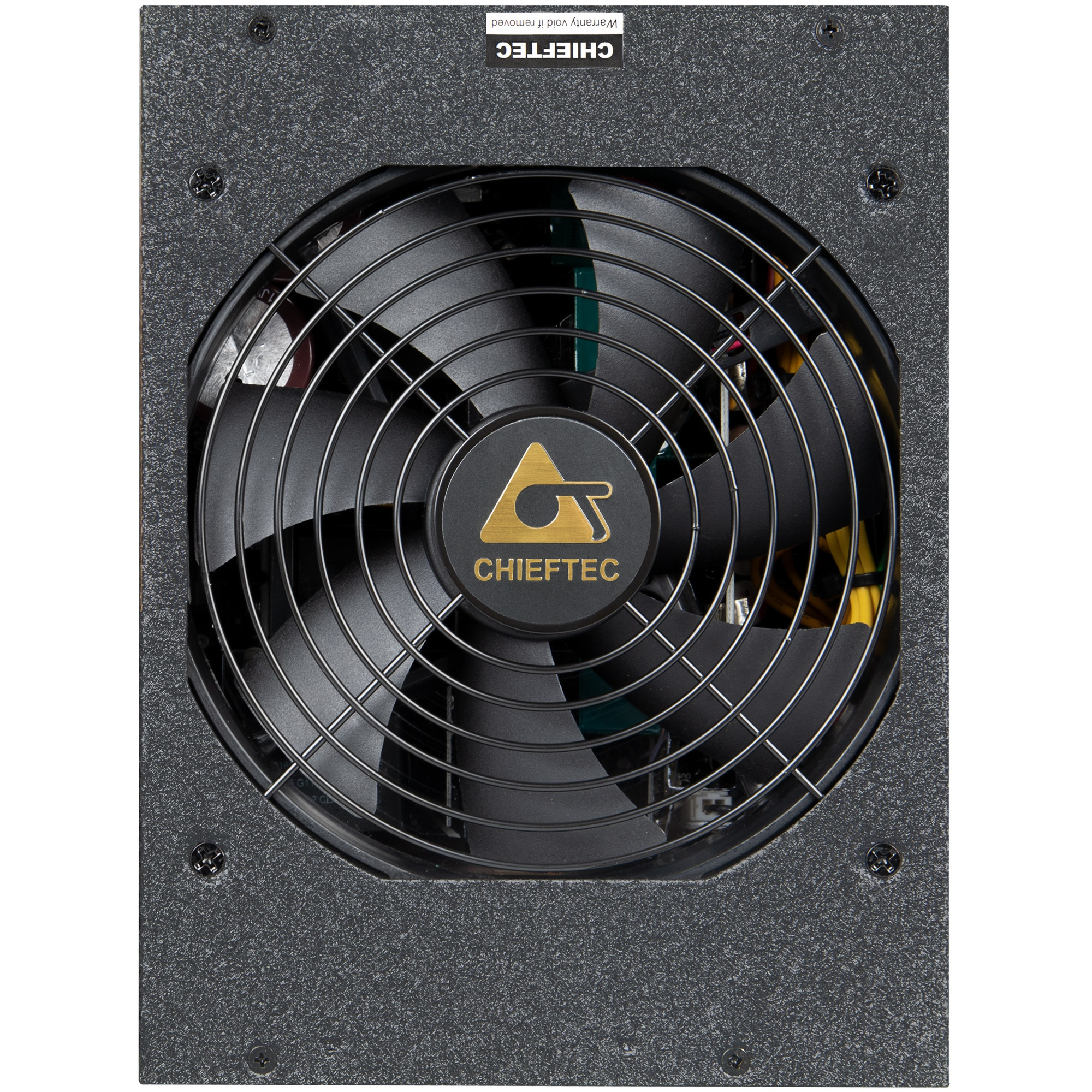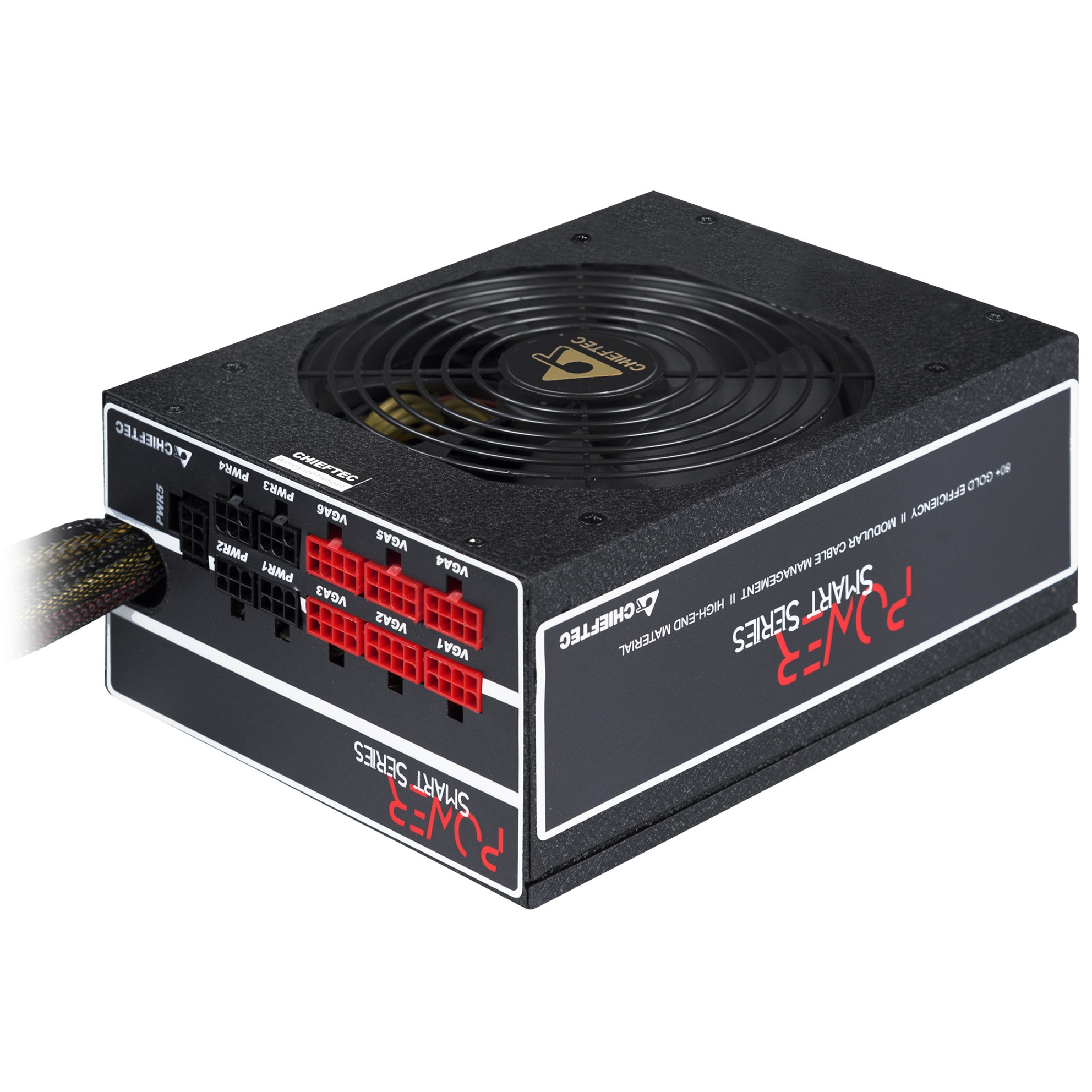 Благодаря использованию технологии Intel Haswell, удобному кабель-менеджменту, а также применению дизайна +12V Single Rail Design с одной выделенной линией +12В на выходе и достаточно длинным отстёгивающимся кабелям в оплётке с большим количеством коннекторов блок питания Chieftec обеспечивает поддержку любых компонентов с интенсивным энергопотреблением, включая системы с несколькими графическими адаптерами. Эффективность блока питания в рабочем режиме превышает 90 %, что обеспечивает надёжность и стабильность питания компьютерной системы. В БП используется активная коррекция коэффициента мощности (PFC, Power Factor Correction).