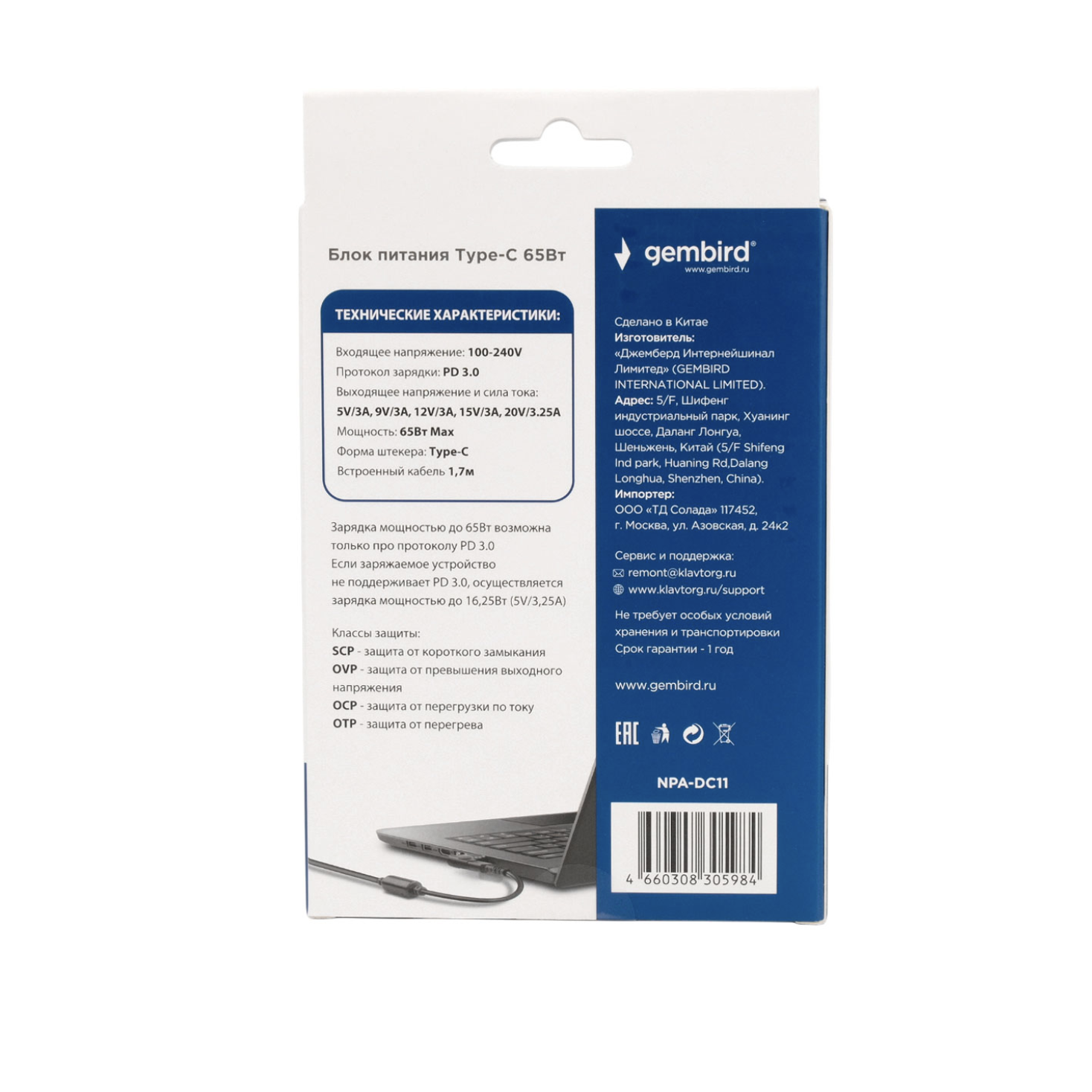 | Протокол зарядки | PD 3.0 |