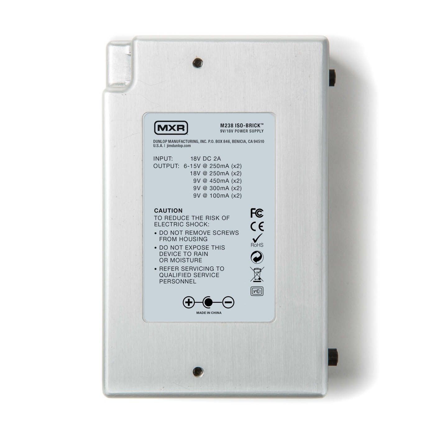 MXR M238 ISO Brick – это маленький, тихий и лёгкий блок питания в прочном металлическом корпусе, готовый работать с различными педалями, не утяжеляя ваш педалборд.