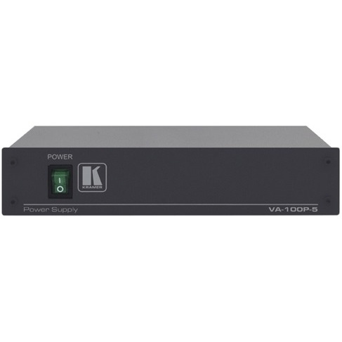 Kramer VA-100P-5 – импульсный источник постоянного напряжения 5 В с 10-ю выходами и суммарной нагрузочной способностью 8 А. Прибор предназначен для использования с приборами Kramer, работающими от индивидуальных сетевых блоков питания.