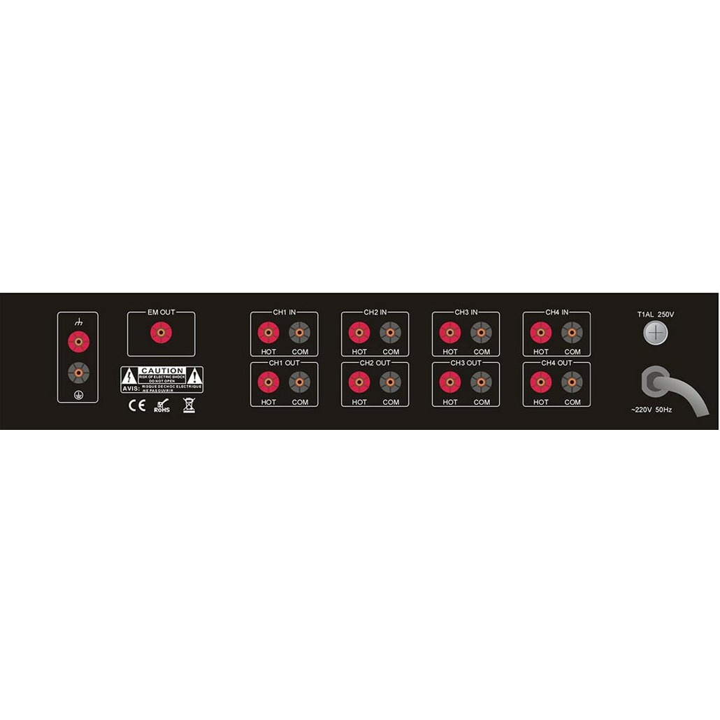 - Блок включается в разрыв между выходами усилителей и линиями громкоговорителей.