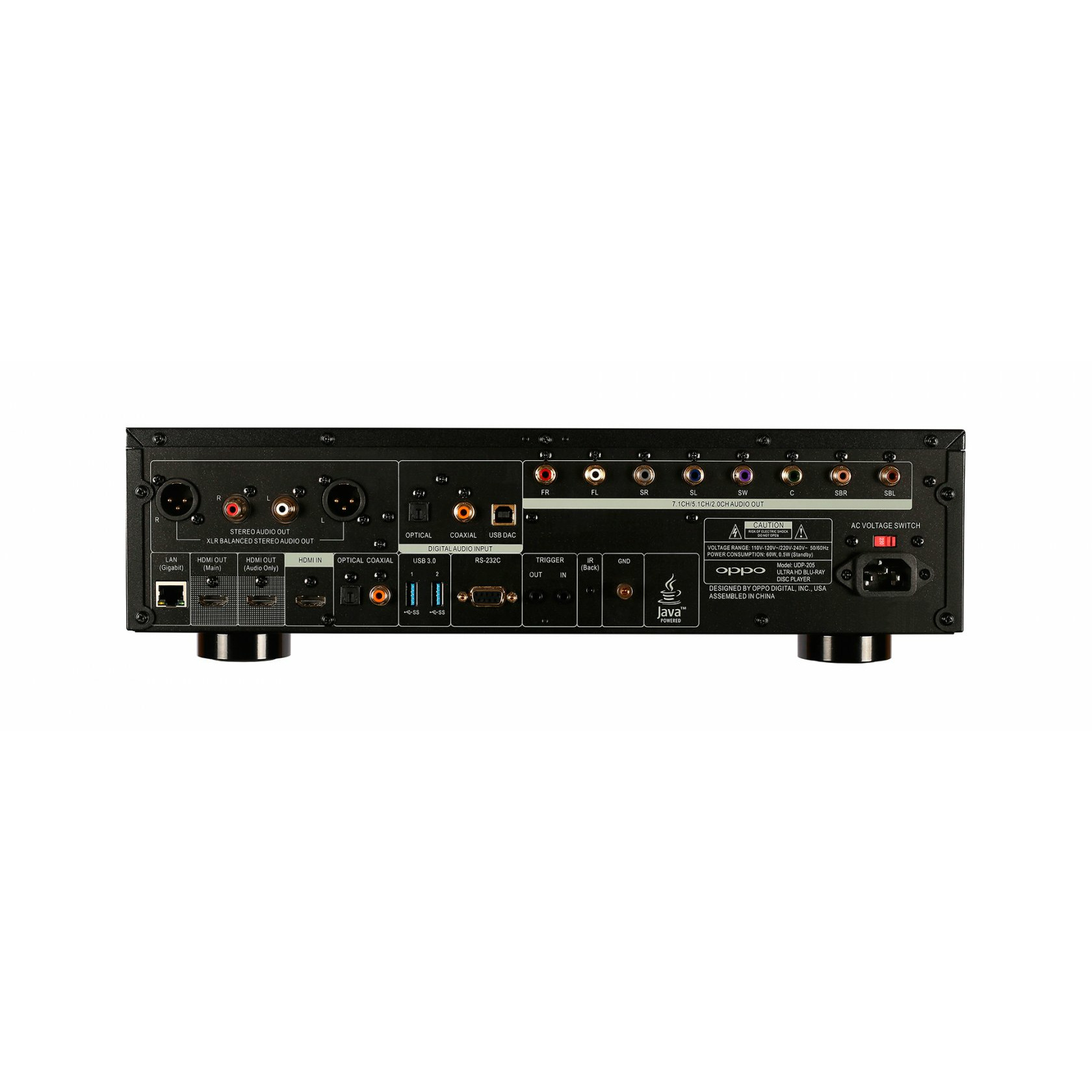 UDP-205 имеет переднюю панель из матового алюминия и металлическое шасси, что продолжает традицию отличного качества изготовления, которое было опробовано в предыдущих поколениях универсальных проигрывателей OPPO, а также имеет двухслойное шасси, которое повышает его стабильность и возможности гашения вибрации.