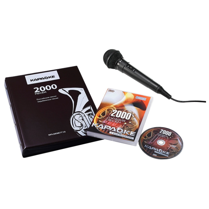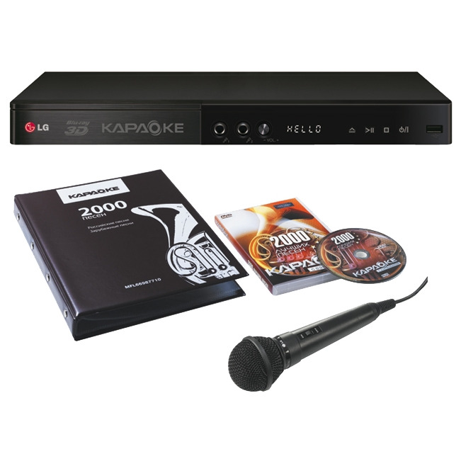 Караоке — одно из популярнейших развлечений в России. Для любителей такого развлечения компания LG предлагает множество готовых решений. Устройте дома вечеринку, как в караоке-клубе с качественным и мощным звуком. Для этого, в комплекте уже есть диск на 2000 караоке-песен, каталог в жесткой обложке и микрофон. Видео-караоке воспроизводит текст песни на экране — на фоне красивых картинок при этом буквы закрашиваются в такт музыке: это очень удобно, если вы не очень хорошо знаете слова песен. Пение оценивает сама система и поощряет фанфарами. Два разъема для микрофонов для пения дуэтом.