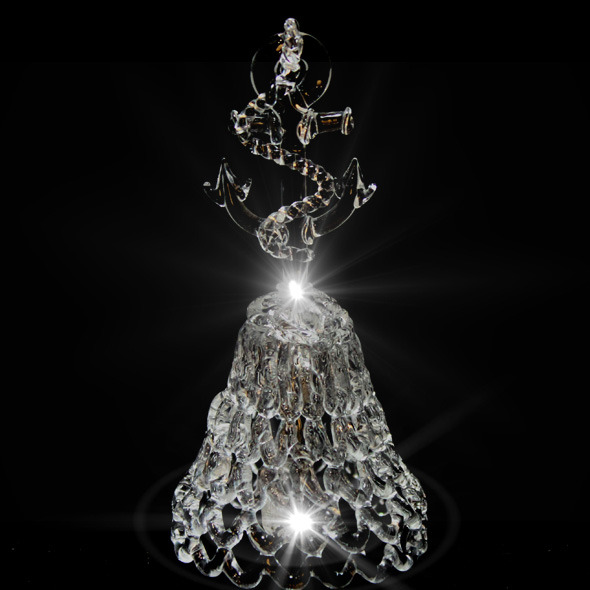 Изготовлен колокольчик вручную из тонких прутиков кварцевого стекла - чистого минерального стекла, которое иначе именуется горным хрусталем, так как имеет абсолютно схожий состав - чистый диоксид кремния.